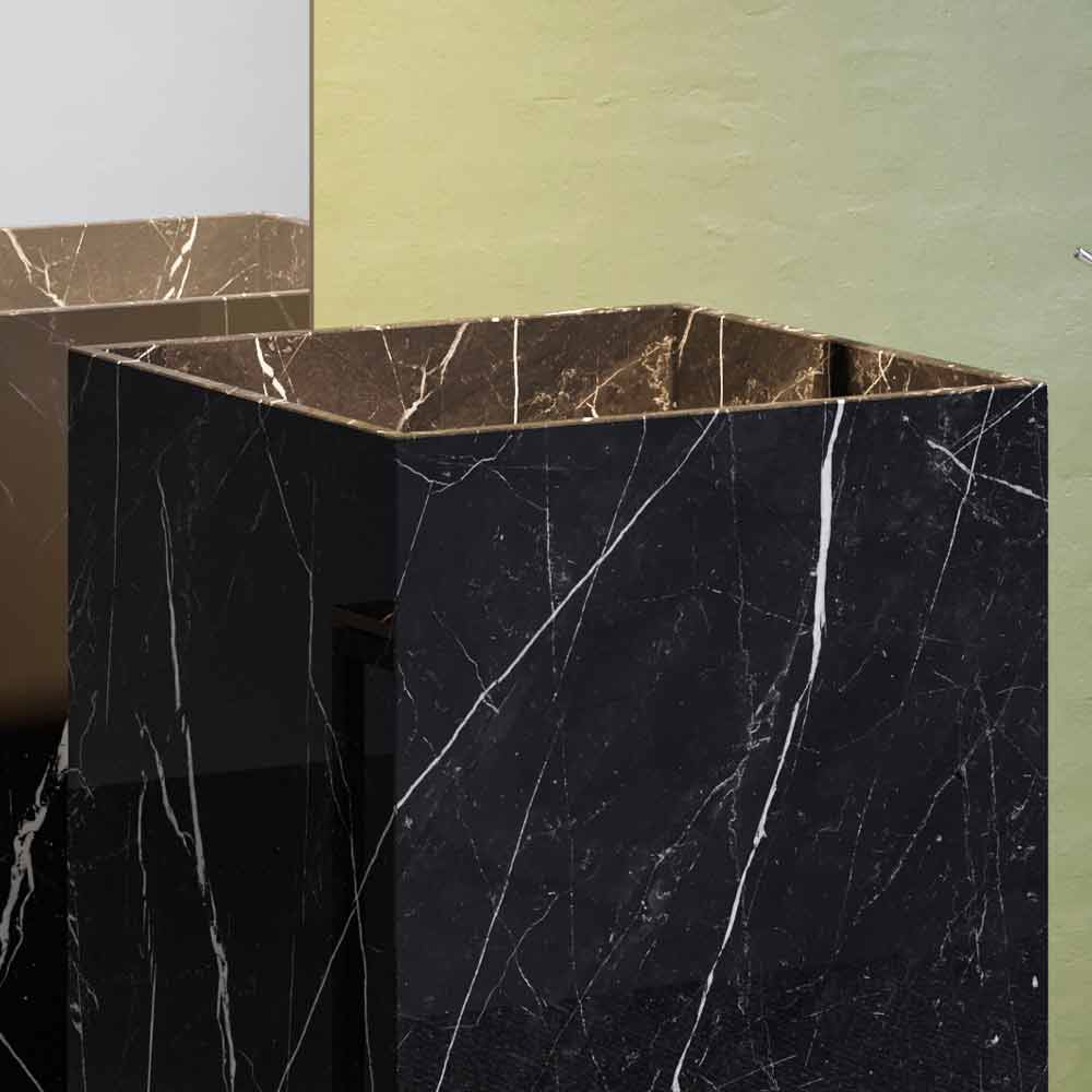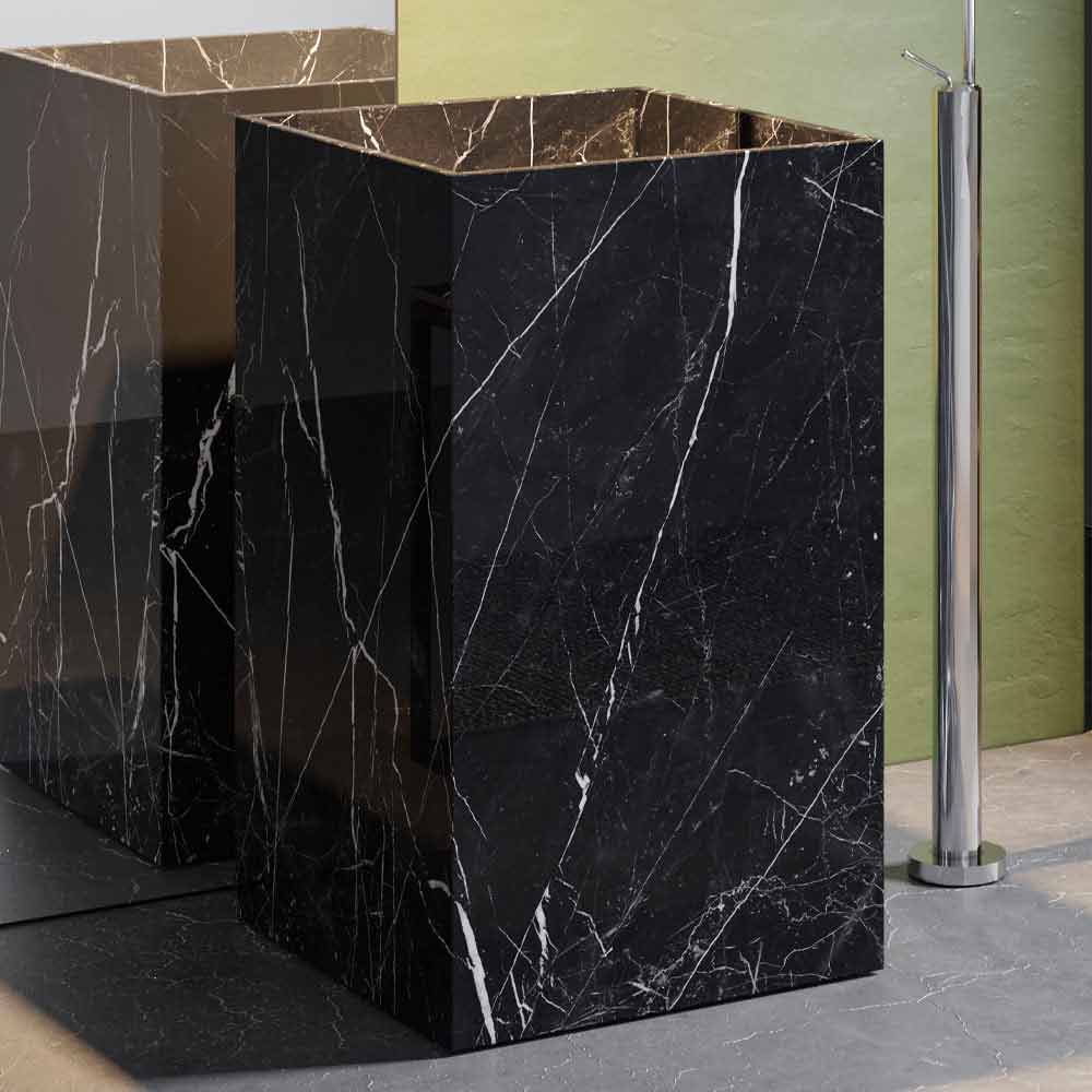 Samostatně stojící umyvadlo do koupelny z porcelánové kameniny, geometrické provedení, vysoká kvalita vyrobené v Itálii.