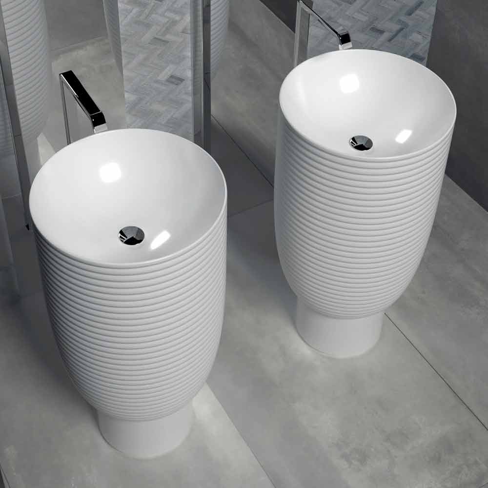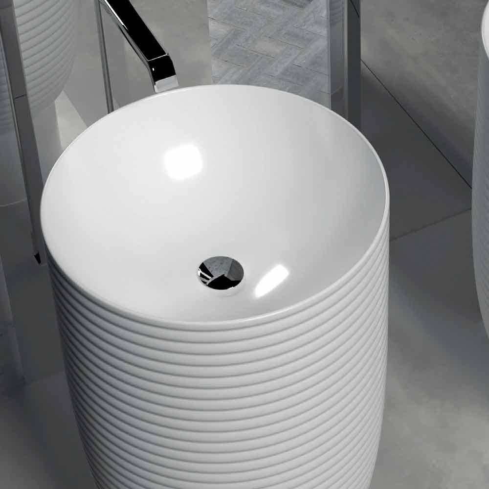 Umyvadlo Trabia je součástí kolekce, která kombinuje emoce a zvědavost , vzbuzuje silné pocity a zájem. Koupelna je prostředím, pro které je navzdory estetice upřednostňováno praktické.