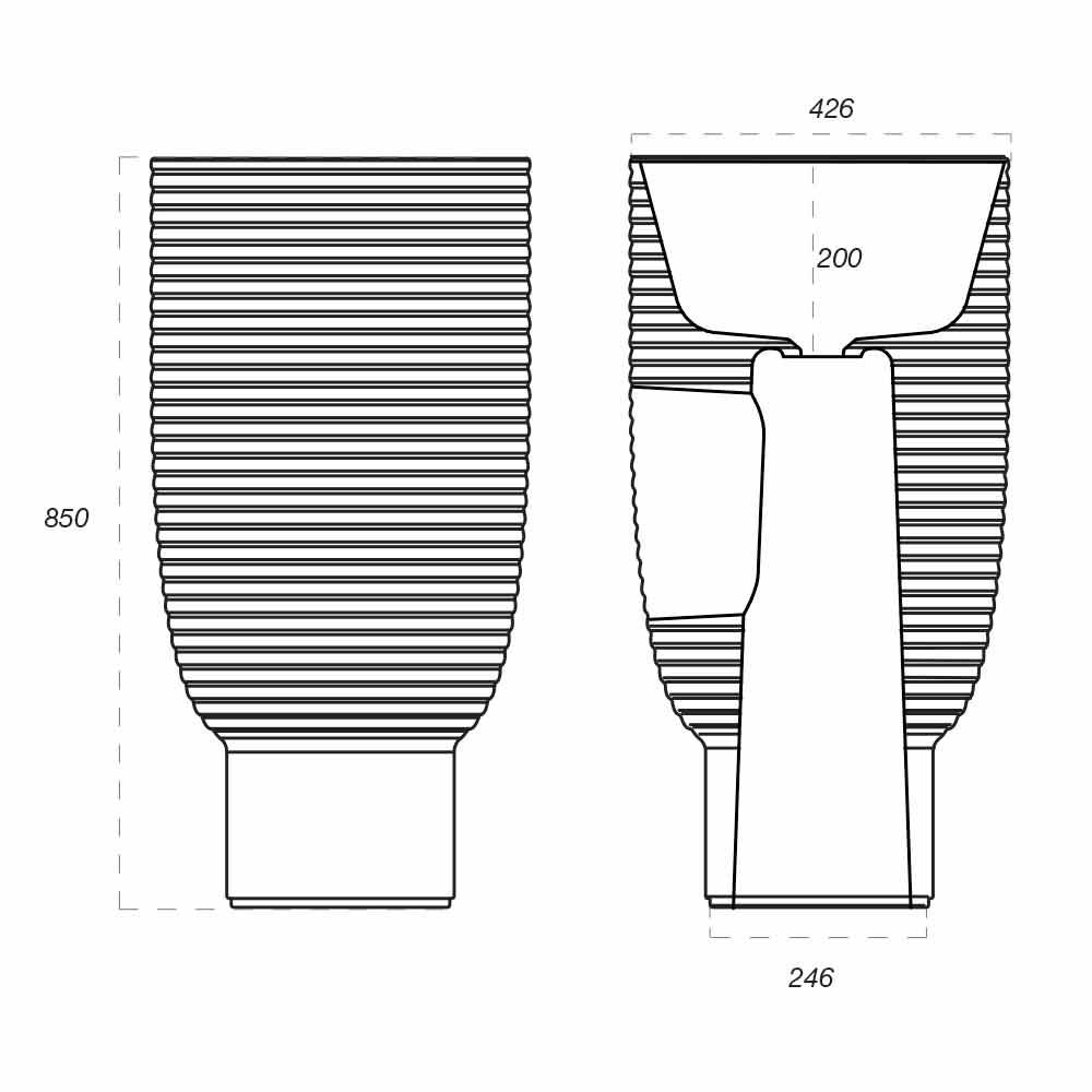 Použitým materiálem je skelný porcelán , což je druh zasklené keramiky , vařený při 1200 ° . Tento materiál je odolný proti kyseliny, teplo, nárazy a poškrábáním, je Hygienické a snadno se čistí a nebude slábnout. Vše se zárukou produktu zcela realizovaného v Itálii.