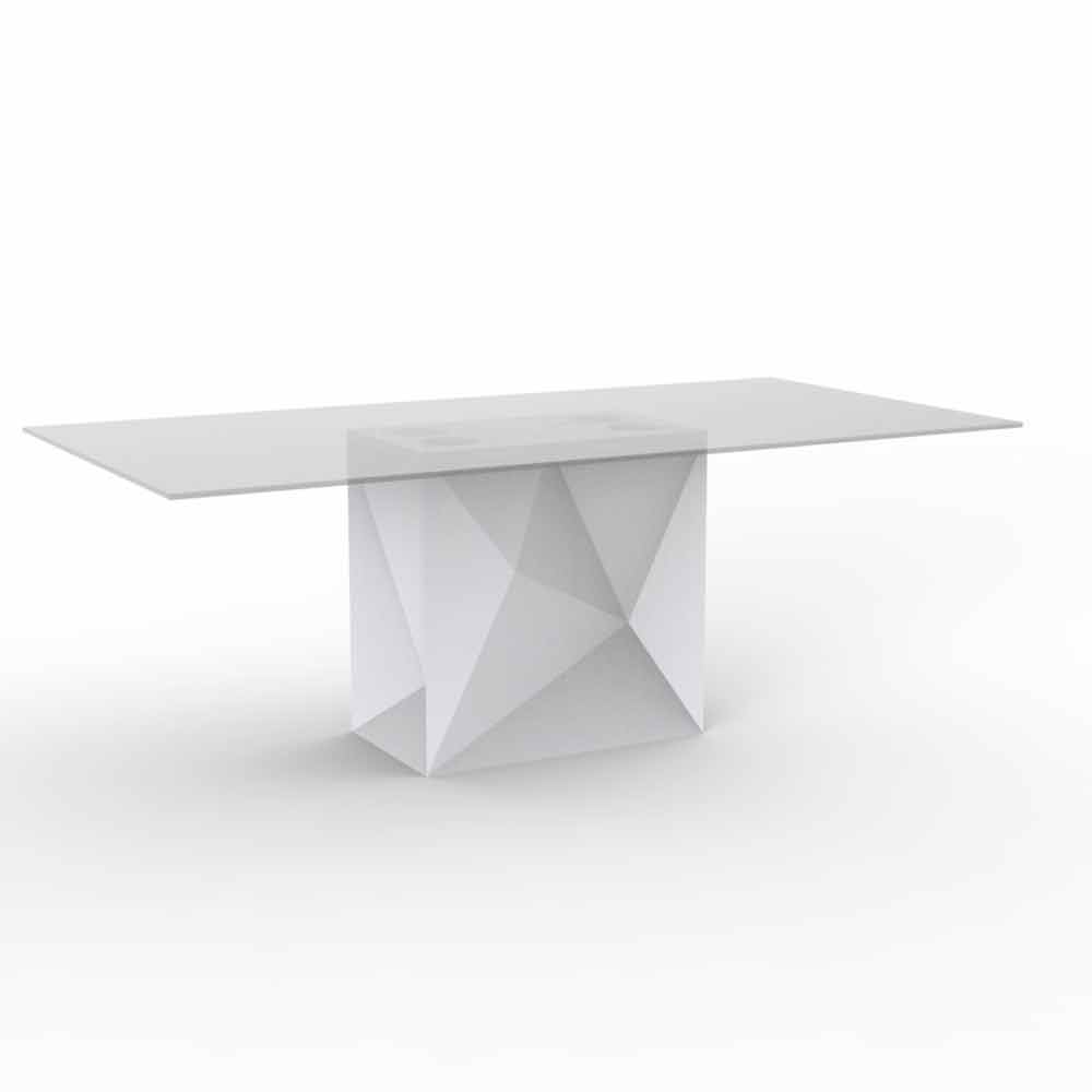 Faz od Vondom bílého lakovaného zahradního stolu vyrobeného z polyethylenové pryskyřice dvojitou stěnou rotační formy. 100% recyklovatelné.