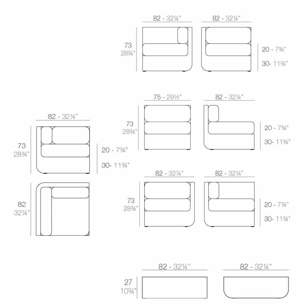 - 1 rohový modul L81.5 x P81.5 x H72 cm;