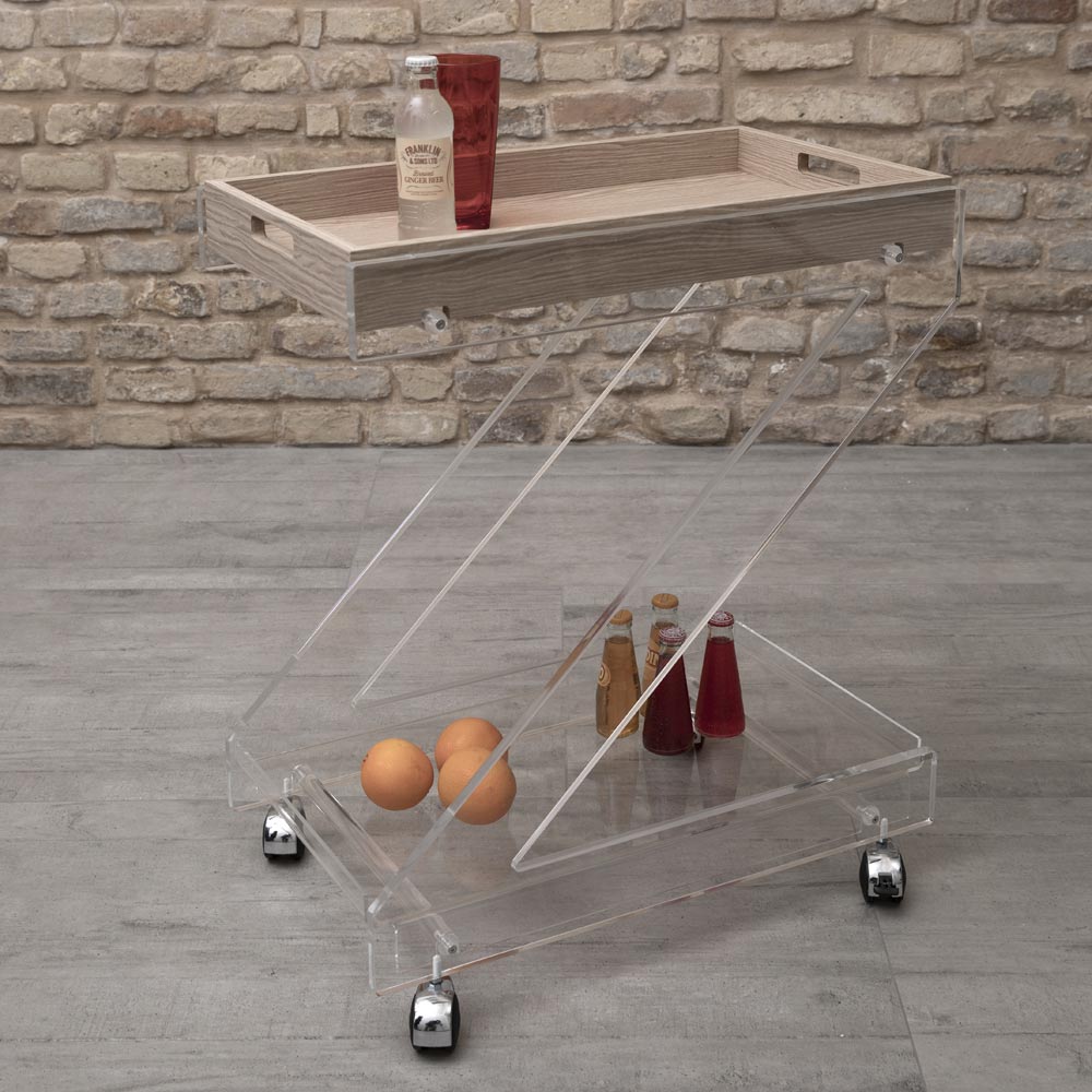 Transparentní akrylový křišťálový vozík s kolečky a 2 povrchovou vanou, vyrobený v Itálii.