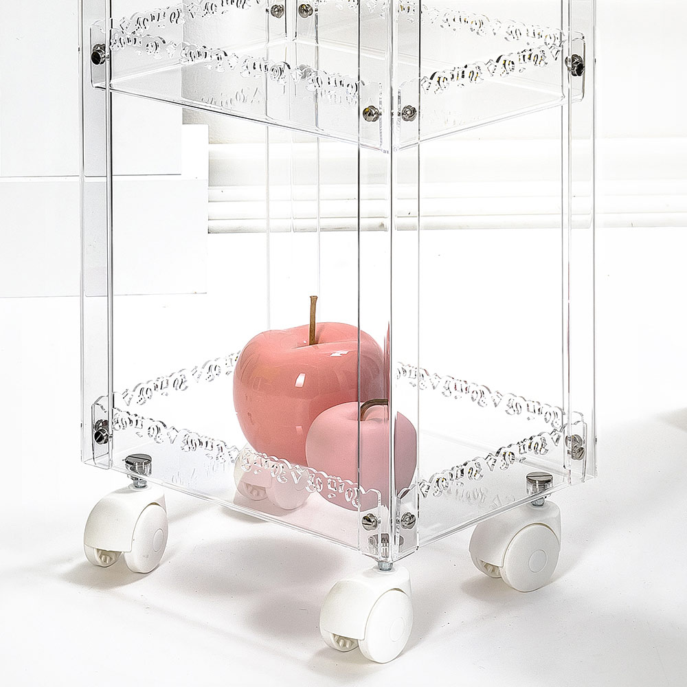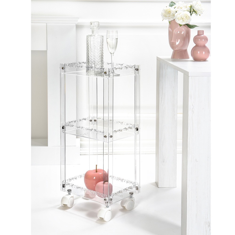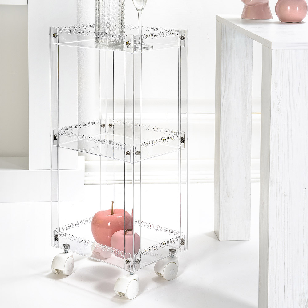 Praktický a všestranný potravinářský vozík vyrobený ze 100% PMMA plexiskla z panenského polymeru. Výrobek s moderním a lineárním designem vyznačujícím se přítomností 3 polic , díky kterým je velmi užitečný jako pomocný vozík v domácím prostředí. Doplněk, ve kterém se estetika snoubí s funkčností. Koncipováno, navrženo a vyrobeno v Itálii z vysoce kvalitních materiálů .