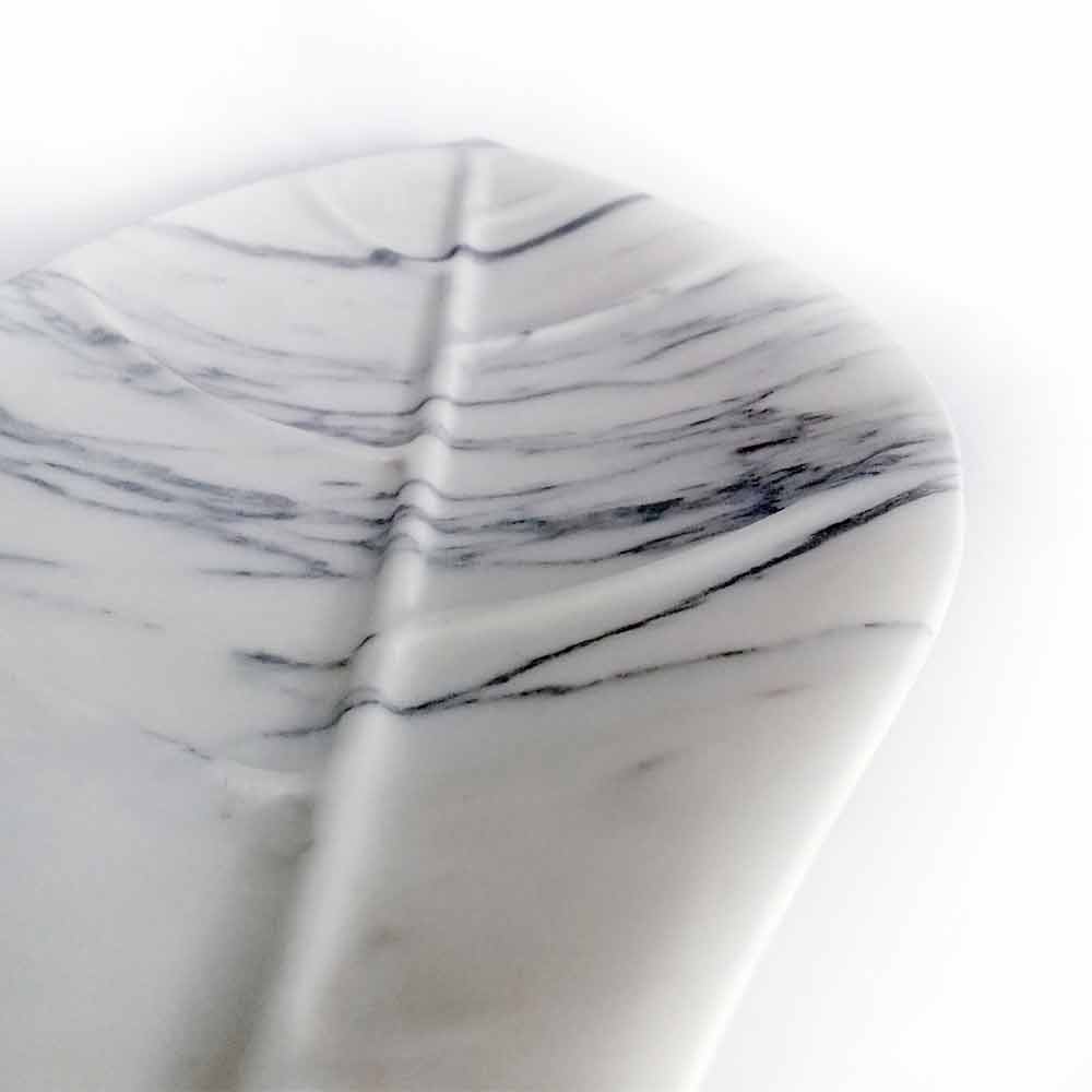 Vrchol se vyznačuje propracovaným designem a tvarem listu s klikatými a jednoduchými liniemi, ale se silným vizuálním dopadem. Ručně vyráběný v Itálii z mramoru Arabescato , materiál, který dodává produktu jeho úžasný sofistikovaný a elegantní styl, ideální pro zdobení nejrůznějších místností domu. Kombinace použitých materiálů, povrchových úprav a technik spolu s úžasnou prací mistrů umožňují získat vysoce kvalitní finální produkt s důrazem na detail a perfektní pro zdobení prostředí se současným a sofistikovaným vkusem.