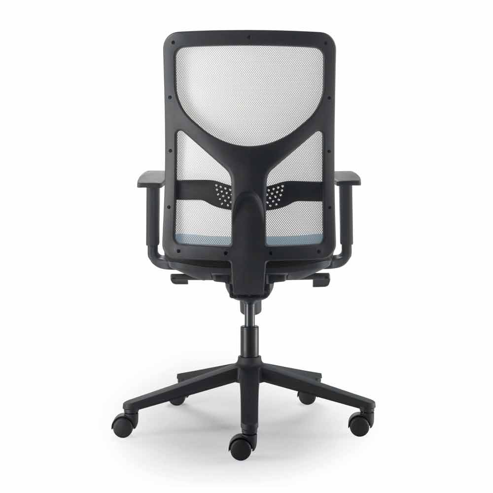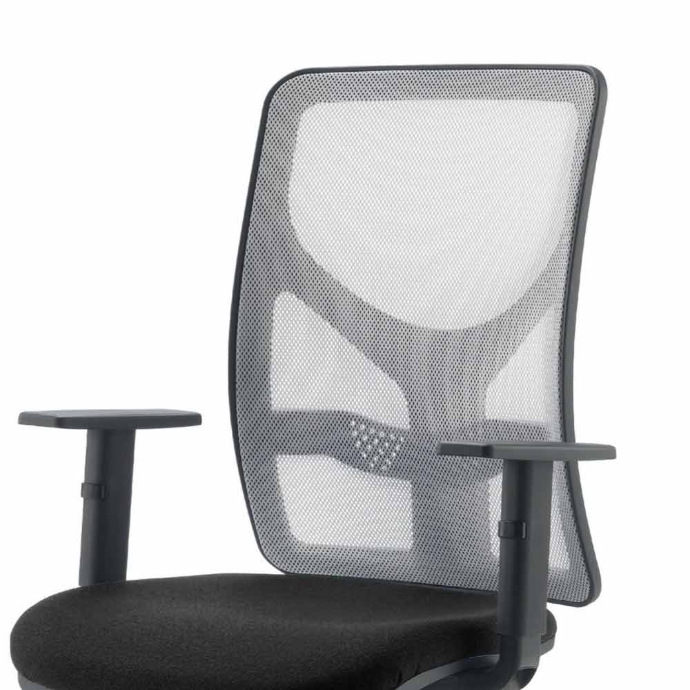 Pevná zadní část s bederní opěrkou nastavitelná ve výšce mm.100. Sklon opěradla 22 °.