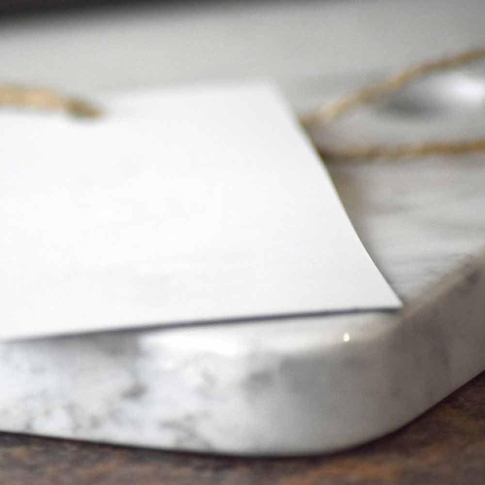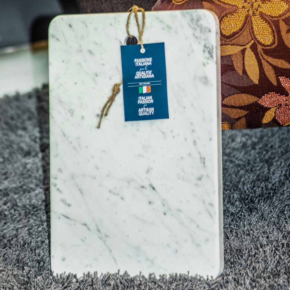 Obdélníkový design krájecí desky z bílého mramoru Carrara Made in Italy.
