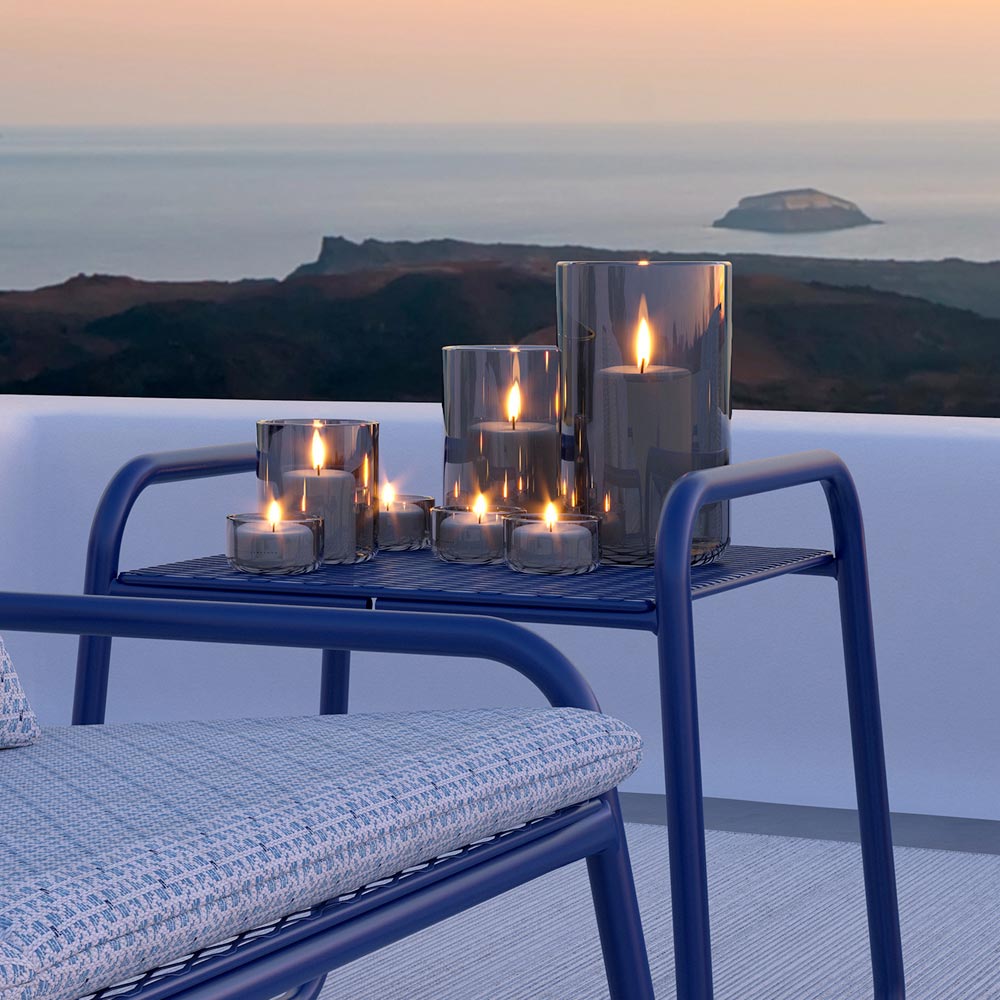 venkovní konferenční stolek má přísný design s rozhodně současnou chutí, ale pevnou a impozantní postavu zjemňují zaoblené nohy.