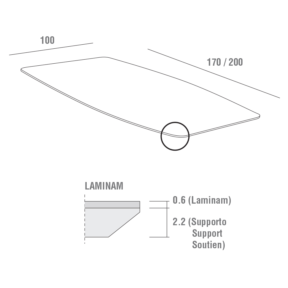 lamina (porcelánová kamenina) nalepená na nosnou plochu z mdf. Ze střetu elegance laminamové keramiky a exkluzivního a noblesního doteku, který je dán úžasnou povrchovou úpravou nohou, se zrodilo jedinečné řešení nábytku, které se vyznačuje