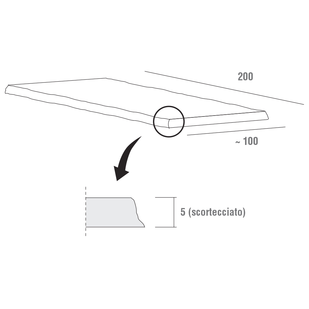povrchové úpravě odkorněného dřeva z 50 mm silné dýhované desky s bočnicemi z masivního dřeva a