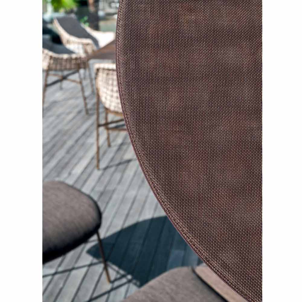 Kulatý látkový slunečník s hliníkovou a ocelovou konstrukcí, luxusní zboží.