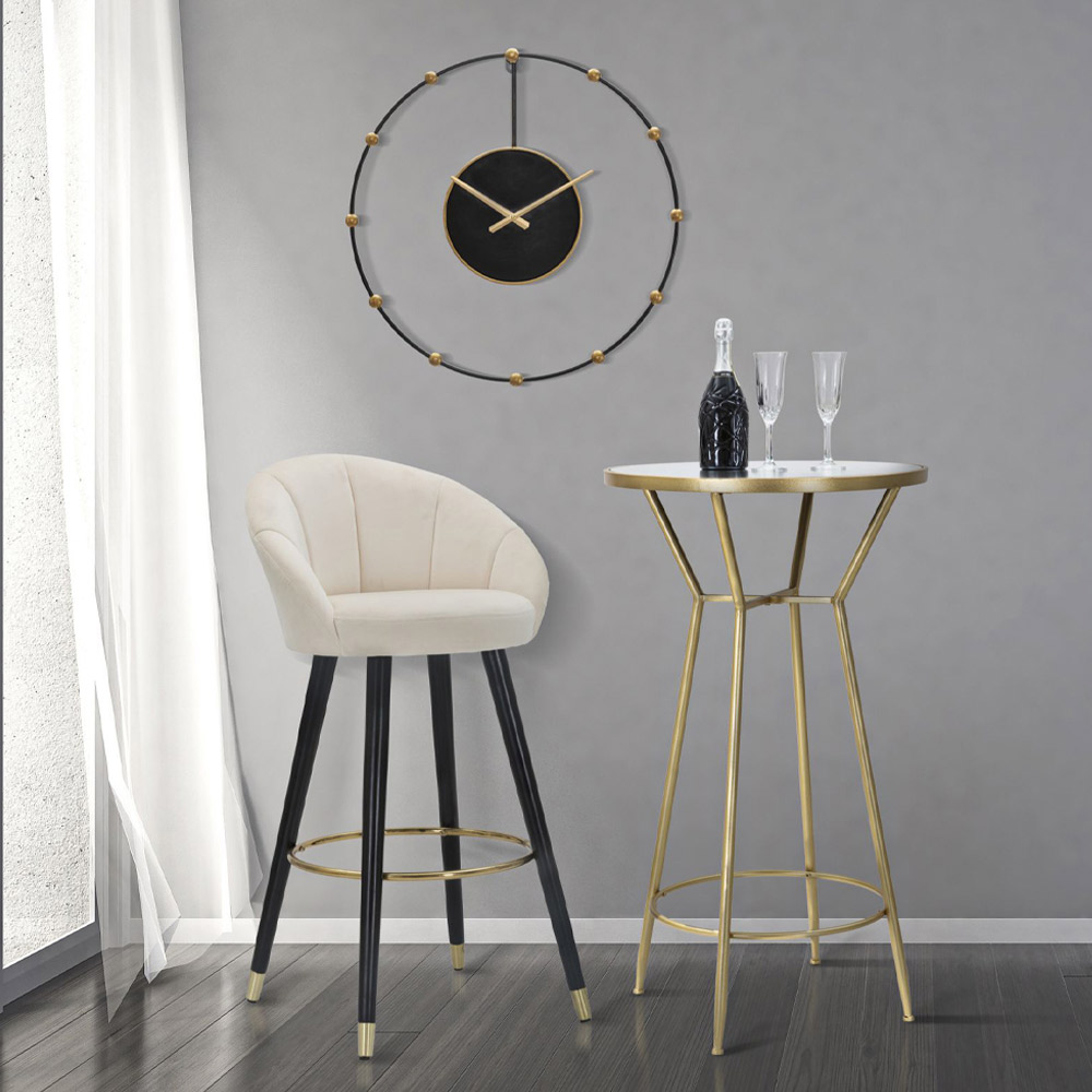 železnými detaily ve zlaté povrchové úpravě a čalouněným sedákem potaženým látkou. Jeho design je doplněn a ještě funkčnější díky