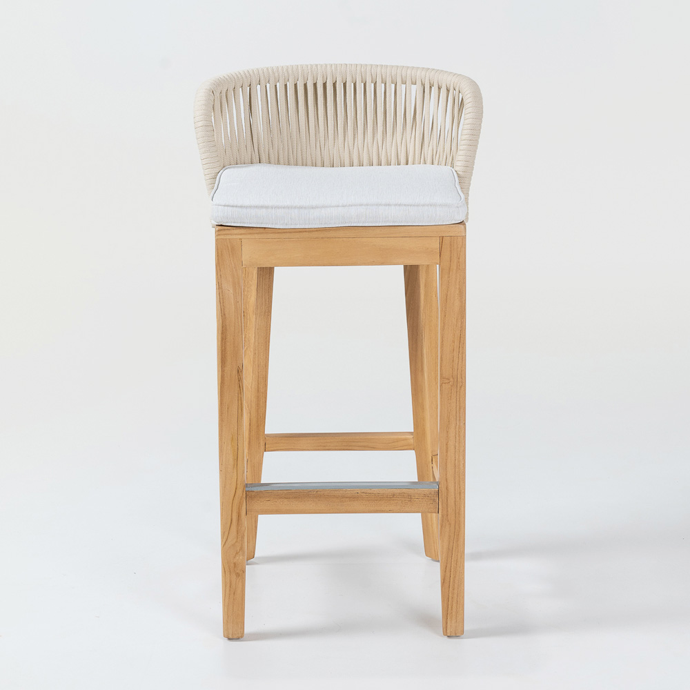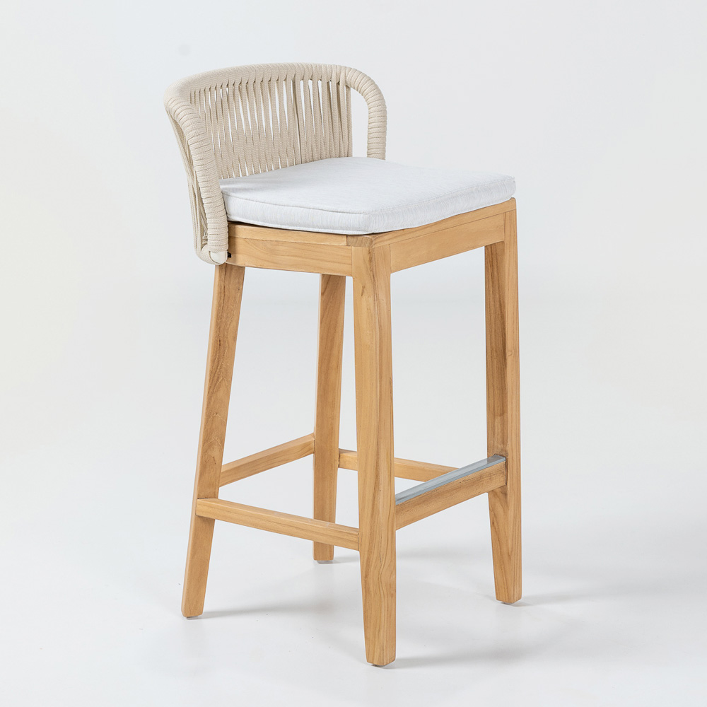Tato elegantní a všestranná barová židle se vyznačuje rámem z přírodního teakového dřeva a hliníku , což zajišťuje perfektní kombinaci pevnosti a lehkosti . Polštář z látky v barvě Havana šedý nabízí vynikající pohodlí, zatímco výplet z olefinového/PP lana nejen dodává nádech sofistikovanosti , ale je také odolný vůči povětrnostním vlivům, takže je ideální pro vnitřní i venkovní použití.
