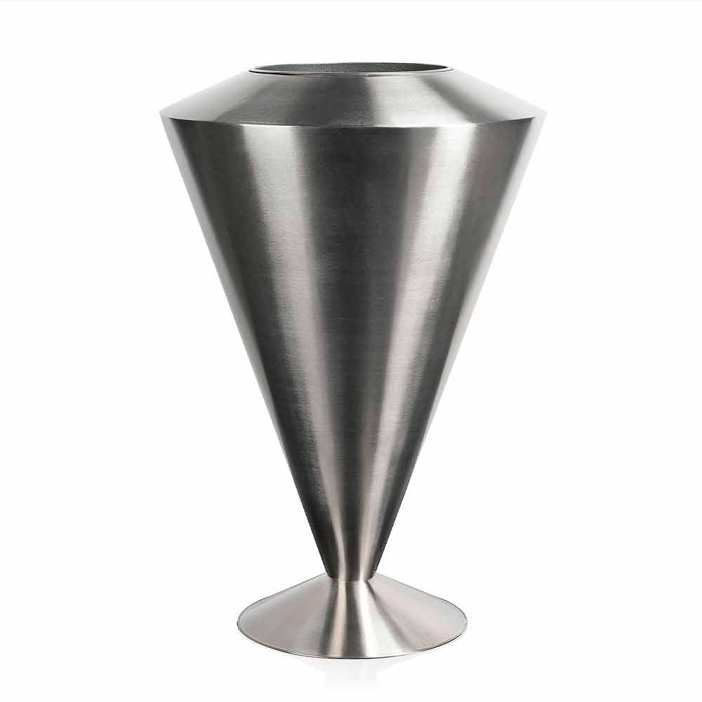Vnitřní dekorativní váza ze saténové oceli vyrobené v Itálii.