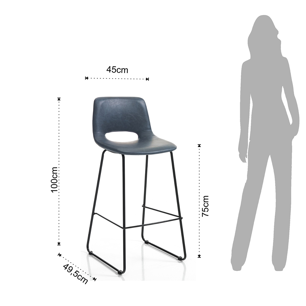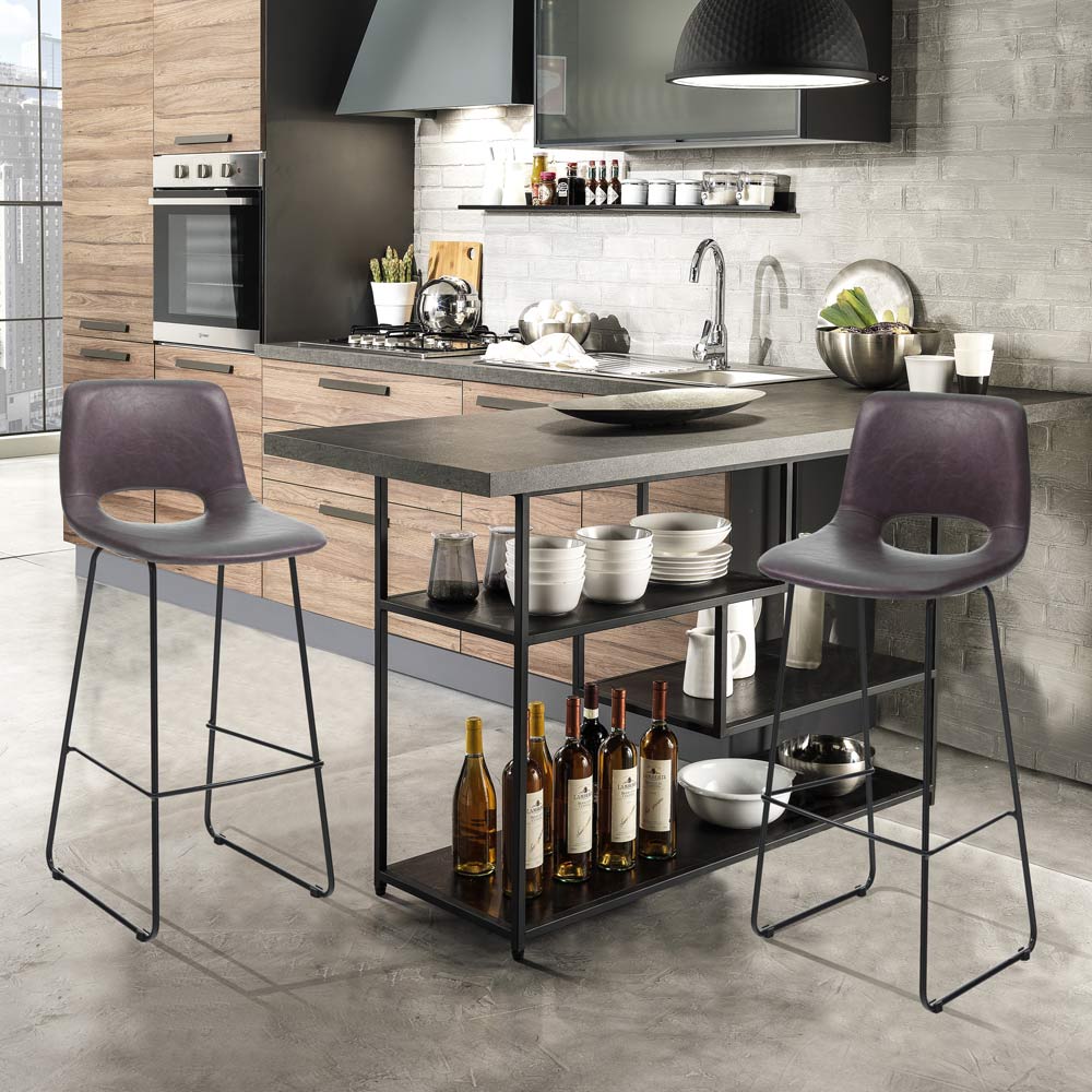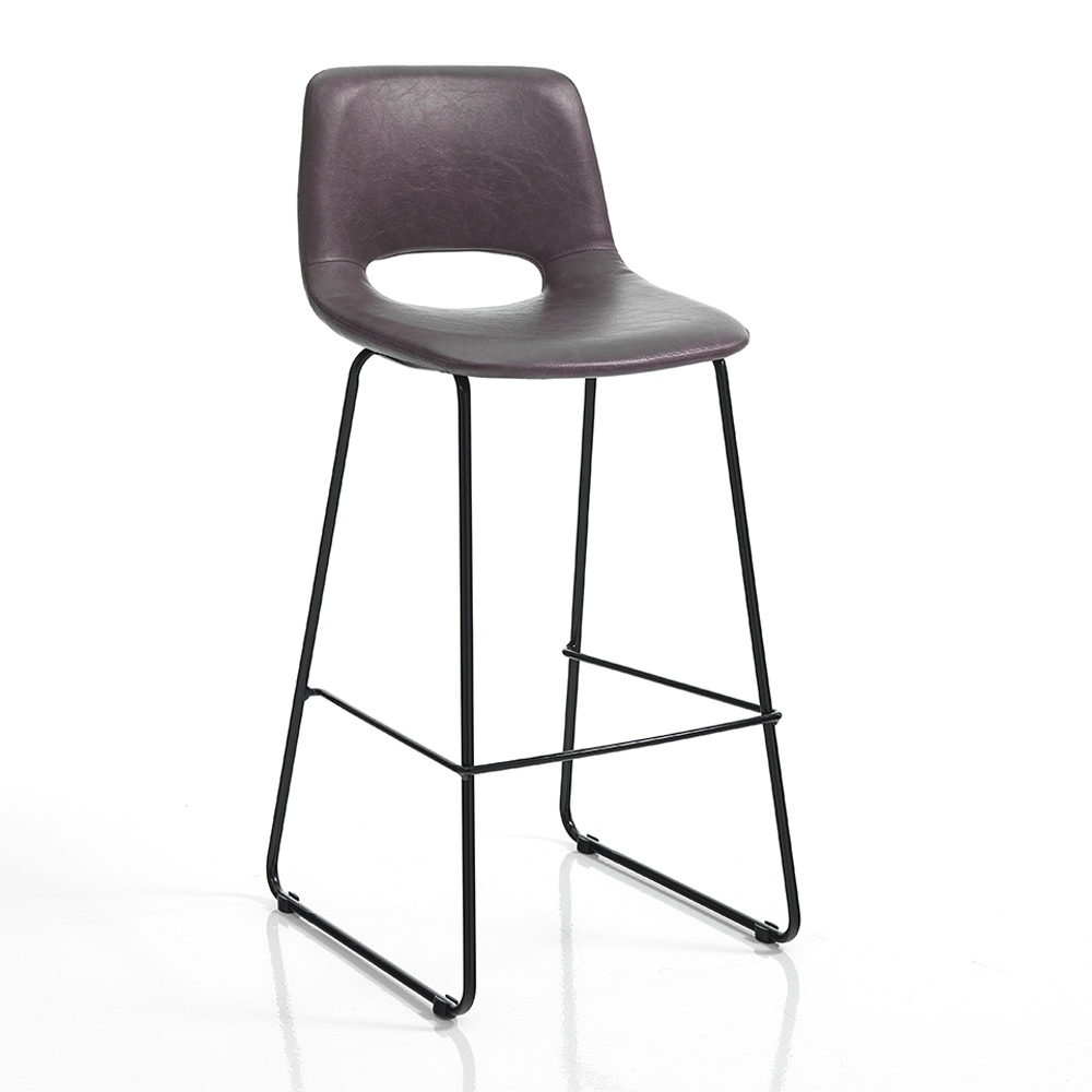 Vysoká kuchyňská stolička z lakovaného kovu a syntetické kůže, 2 kusy.