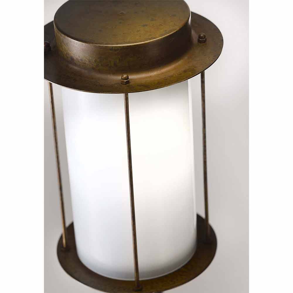 z bílého skla a starožitné mosazi, jeho design je ideální pro milovníky průmyslového ročníku.