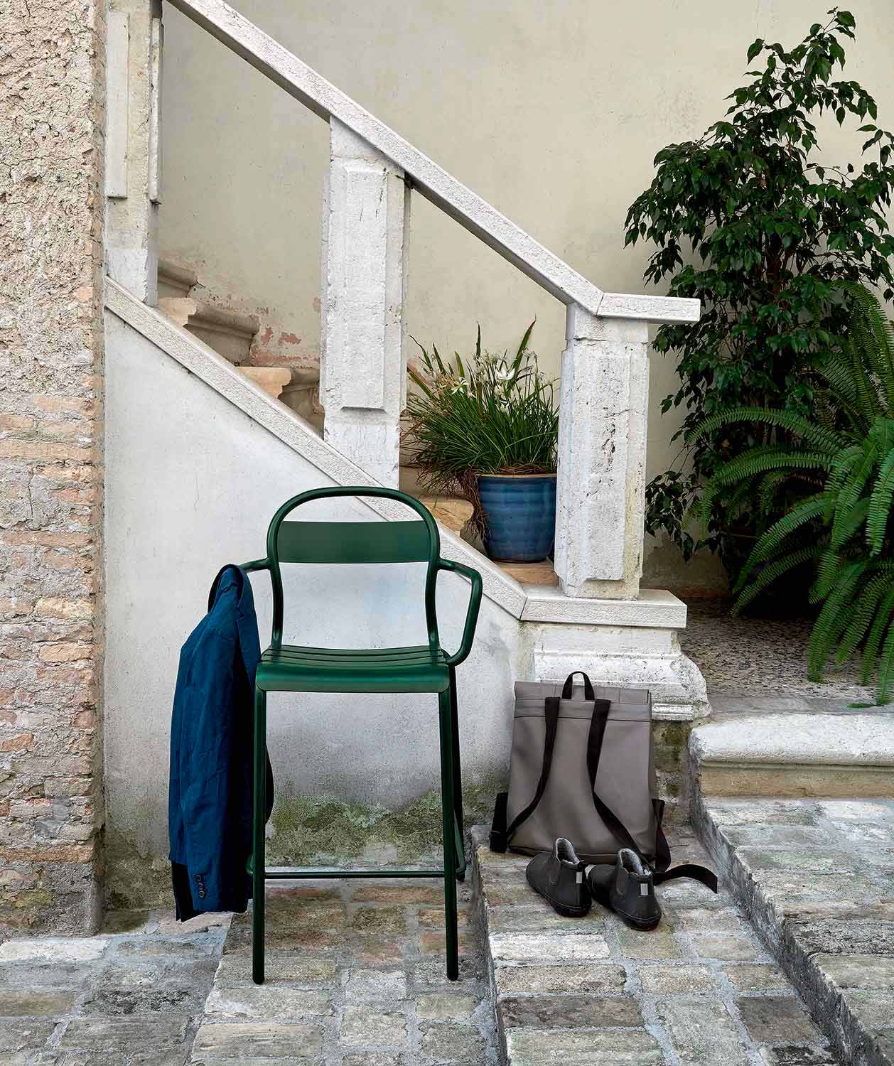 Selima je vysoká venkovní stolička s moderním a elegantním designem, který se vyznačuje nadčasovým a všestranným designem. Stolička je celá vyrobena z hliníku, díky čemuž je ideální pro použití ve vysokých kuchyních nebo barech jak venku, tak uvnitř, pro domácí i jiné použití v domácnosti a je vybavena loketními opěrkami pro větší pohodlí.
