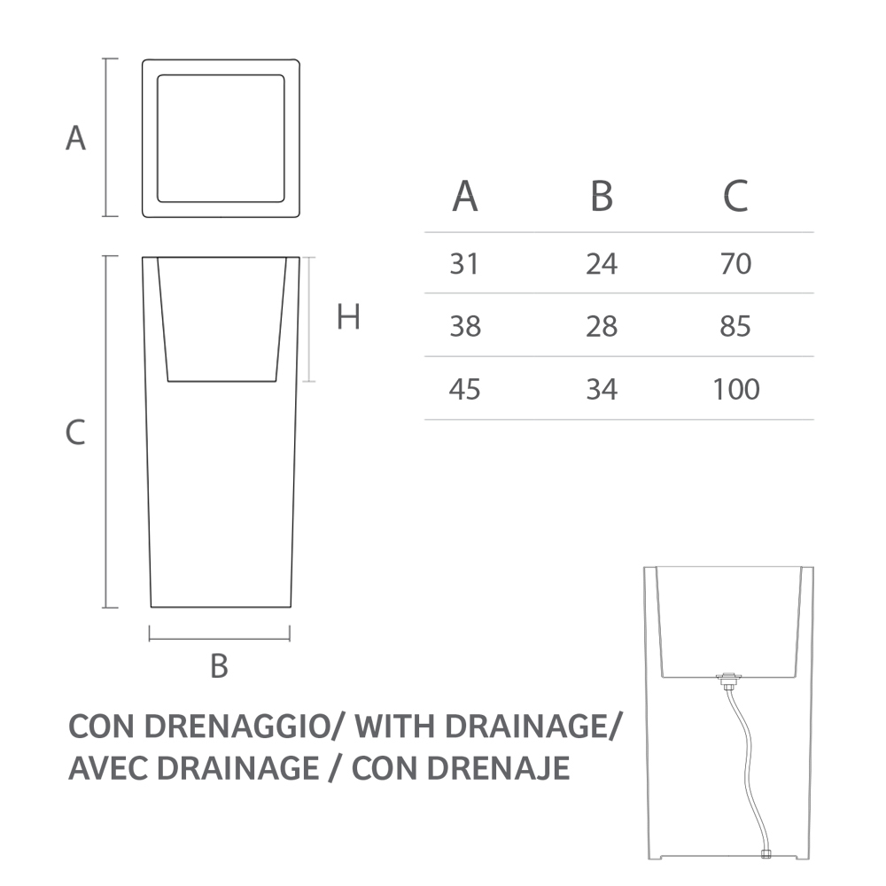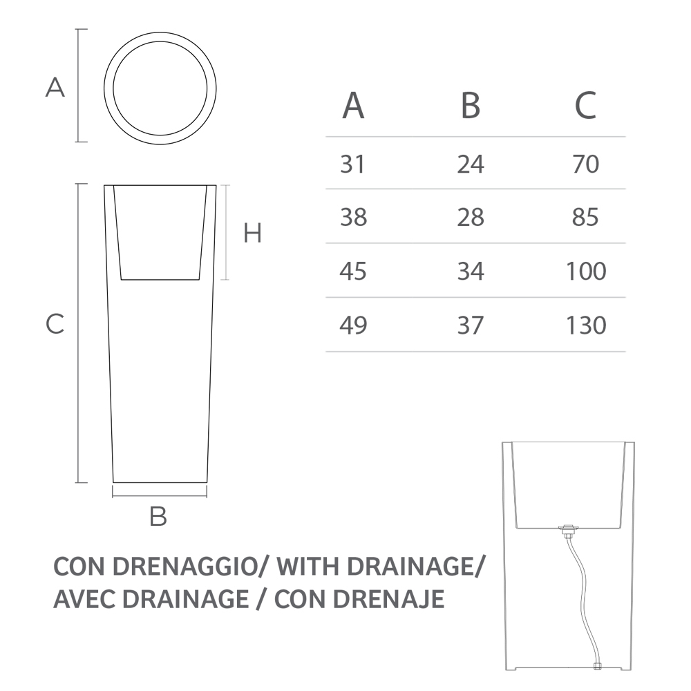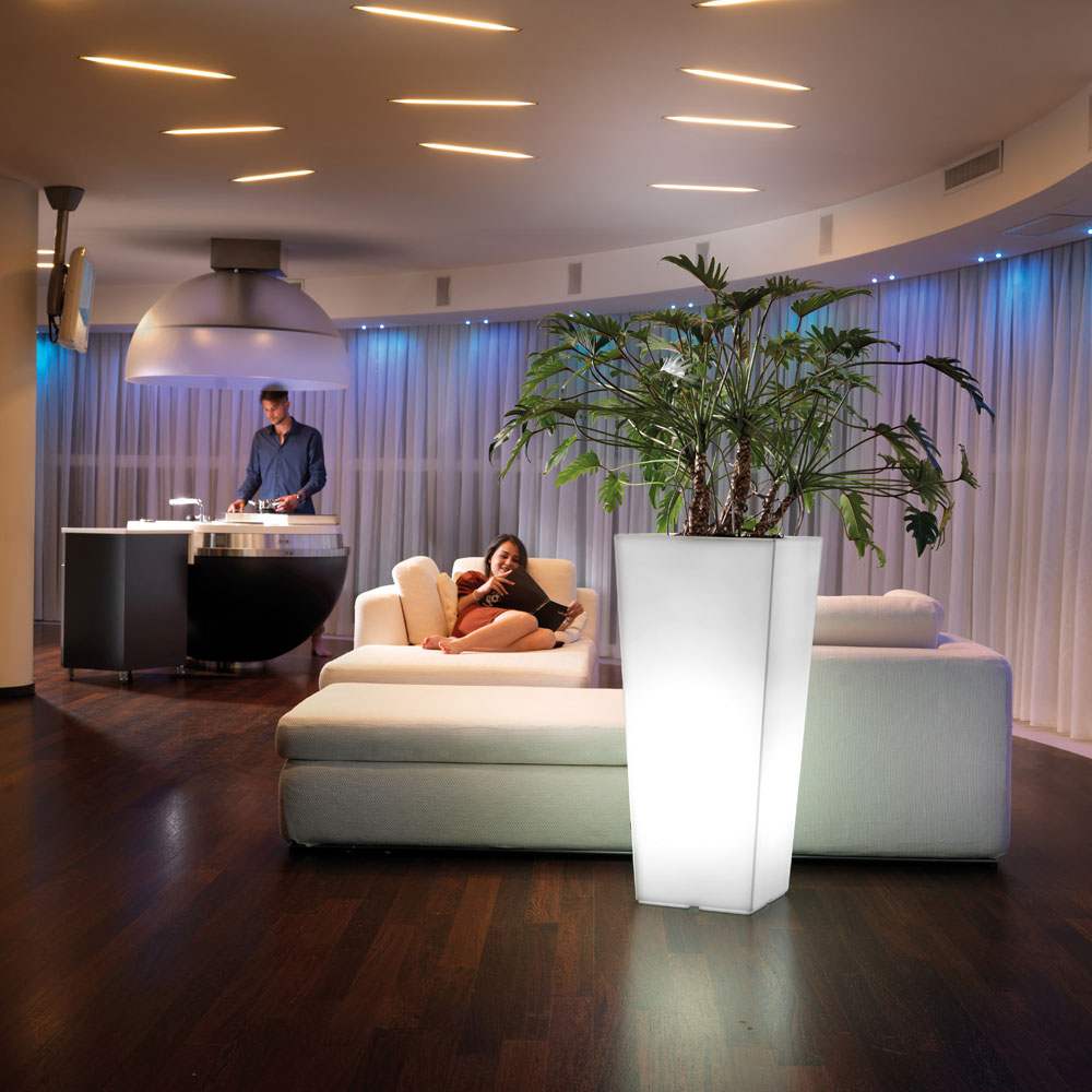 Konstrukce obsahuje sadu pro odvod vody, která umožňuje této váze zdobit vnitřní i venkovní prostory, aniž by byla obětována praktický a funkční aspekt. Konečně je tato vnitřní váza vybavena integrovaným LED světlem , které dodává vnitřním prostorům, ale také venkovním prostředím během akcí extra stylový nádech.