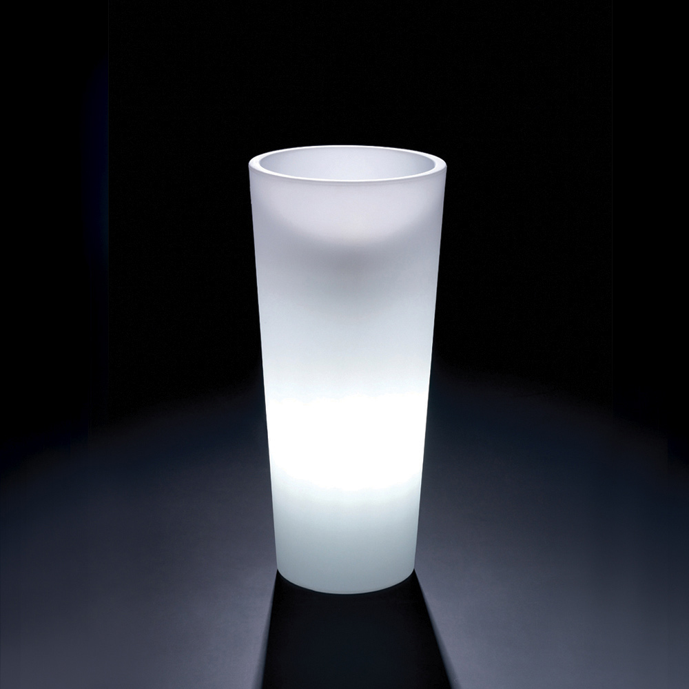 Tato vnitřní svítící váza vyrobená v Itálii z polyetylenu je k dispozici v různých velikostech, aby obohatila a změnila styl vašeho obytného prostoru o extravagantní charakter. Rozhodující a zásadní linie dodávají tomuto zařizovacímu doplňku, který je k dispozici v různých tvarech a velikostech, klasický otisk, aniž by však zakrývaly jeho eleganci a funkčnost .