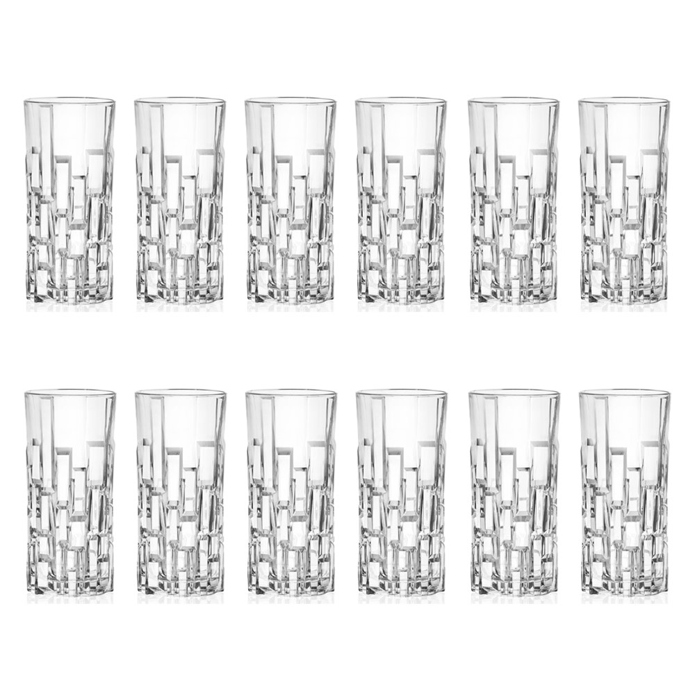 Vysoké sklenice v eko krystalu s ozdobou řezbářství, 12 kusů vyrobené v Itálii.
