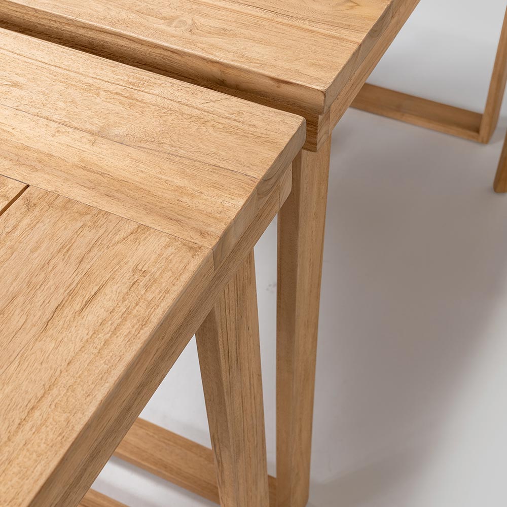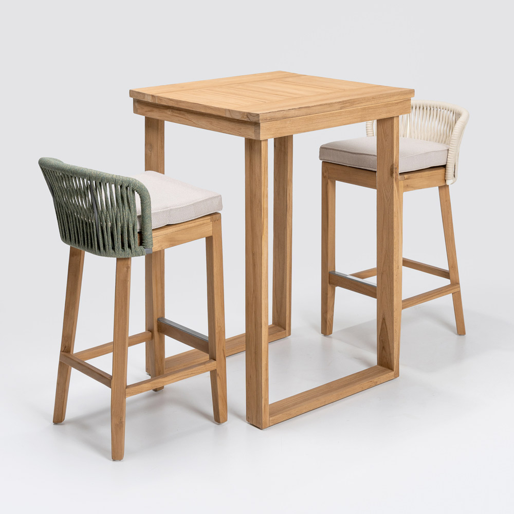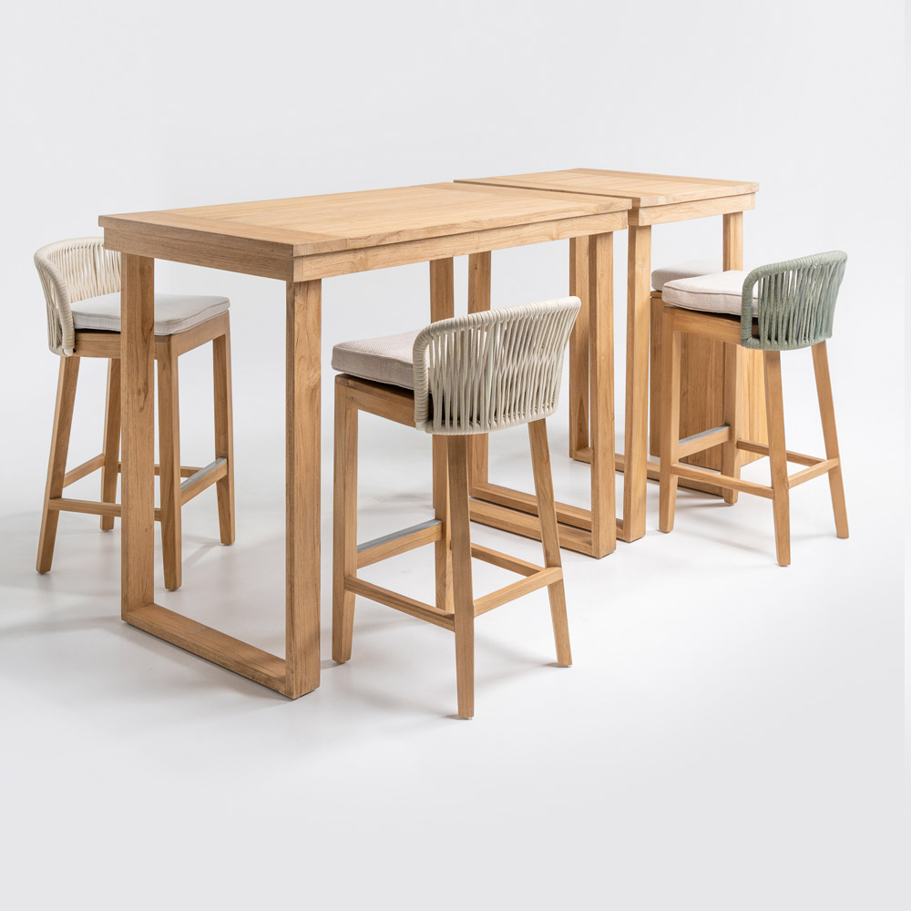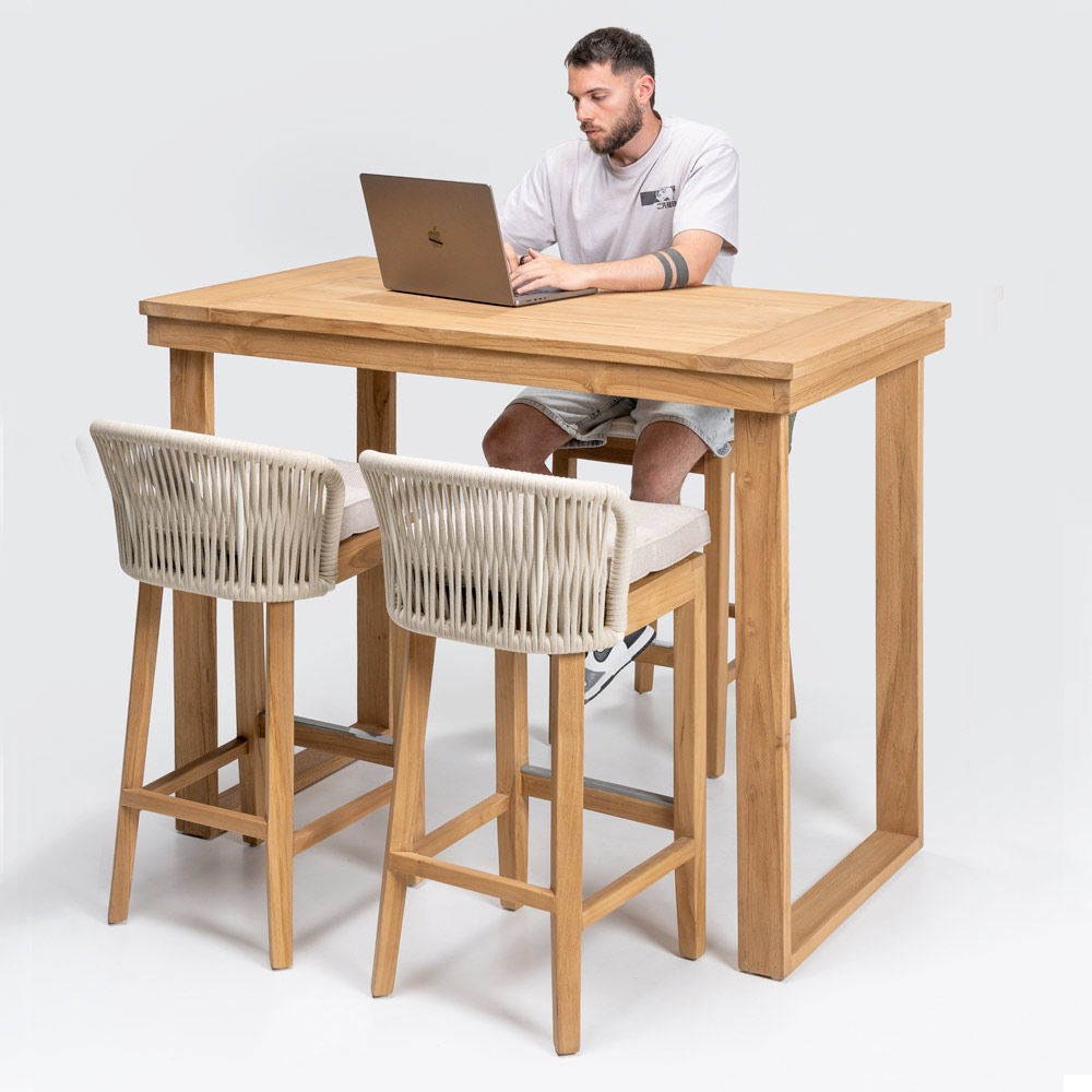 Tento elegantní vysoký barový stůl je dokonalou kombinací sofistikovaného designu a přírodních materiálů . Je vyroben z masivního kartáčovaného teakového rámu a každý detail je navržen tak, aby zajistil odolnost a trvanlivost , zatímco deska z kartáčovaného teakového dřeva nabízí hladký a uhlazený povrch, který zvýrazňuje krásu dřeva s jeho jedinečnou kresbou .