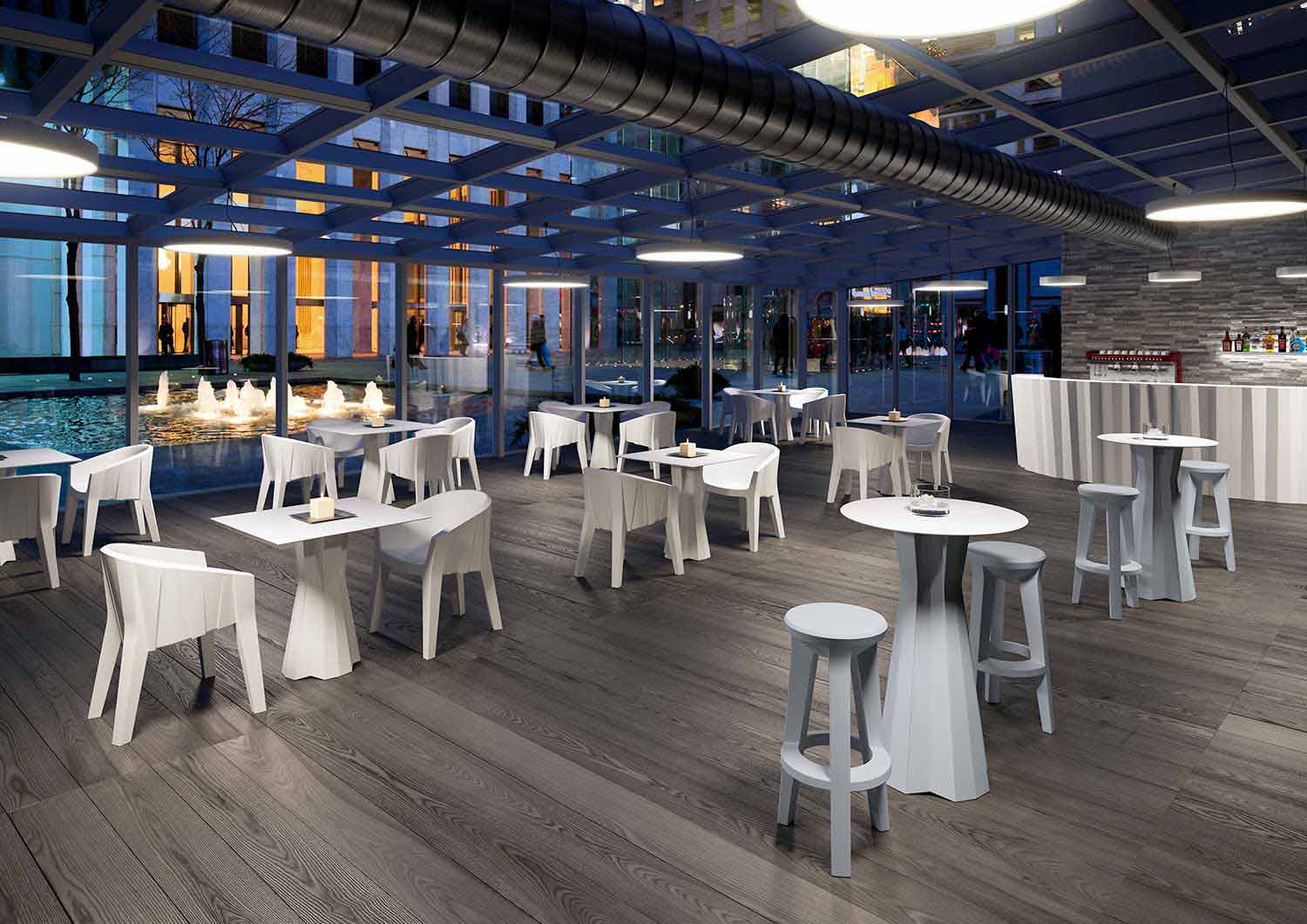 matně bílými polyethylenovými základnami, které poskytují vynikající stabilitu a pevnost spolu s odolností proti teplu, slunci a nárazům. Ideální pro doplnění vybavení prostředí moderním a vytříbeným designem, který vyžaduje dotek osobnosti a stylu.