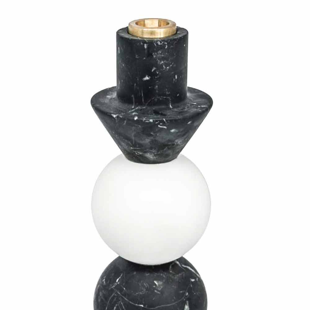 Designový svícen z bílého mramoru Carrara, černého mramoru Marquinia a vysoké dvoubarevné mosazi Made in Italy.