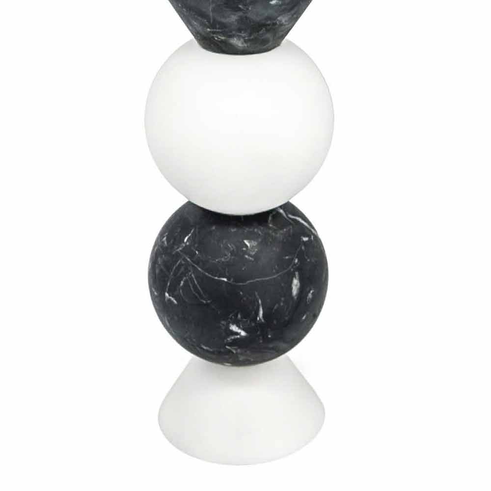 Ručně vyrobený svícen vyrobený z vysoce kvalitního mramoru a mosazi . Je třeba jej považovat za jedinečný kus, protože každý použitý blok mramoru se liší od ostatních pro žíly a odstíny. Bílý mramor pochází z lomu Poggio Silvestre, zdroje prvotřídního mramoru klasifikovaného od minulého století, zatímco černý mramor Marquinia se získává ze španělských lomů.