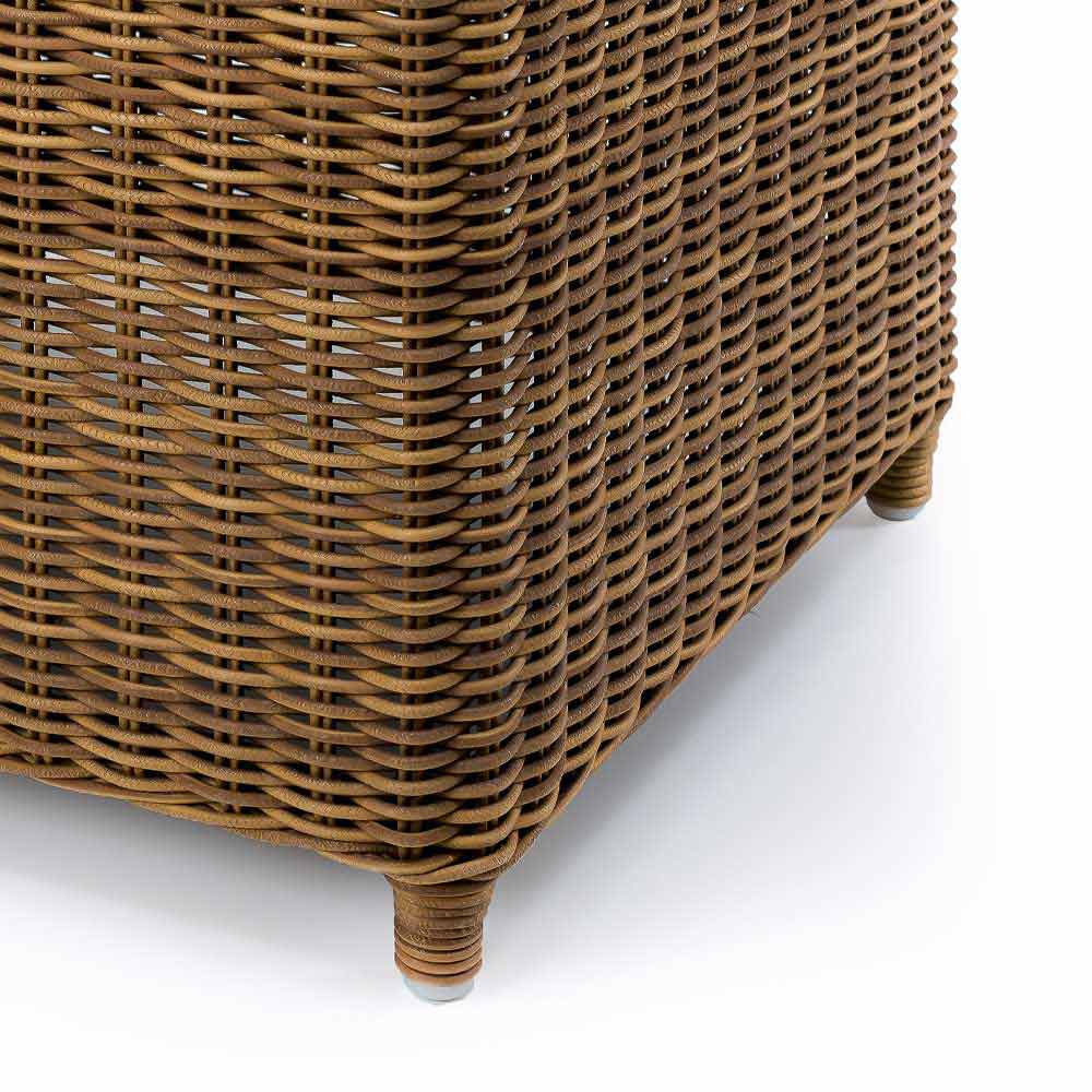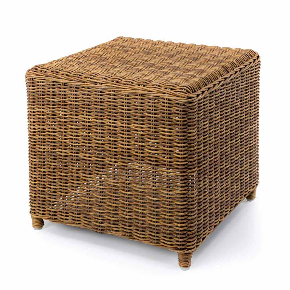 Čtvercový odkládací stolek z jemně tkaného syntetického ratanu, luxusní design.