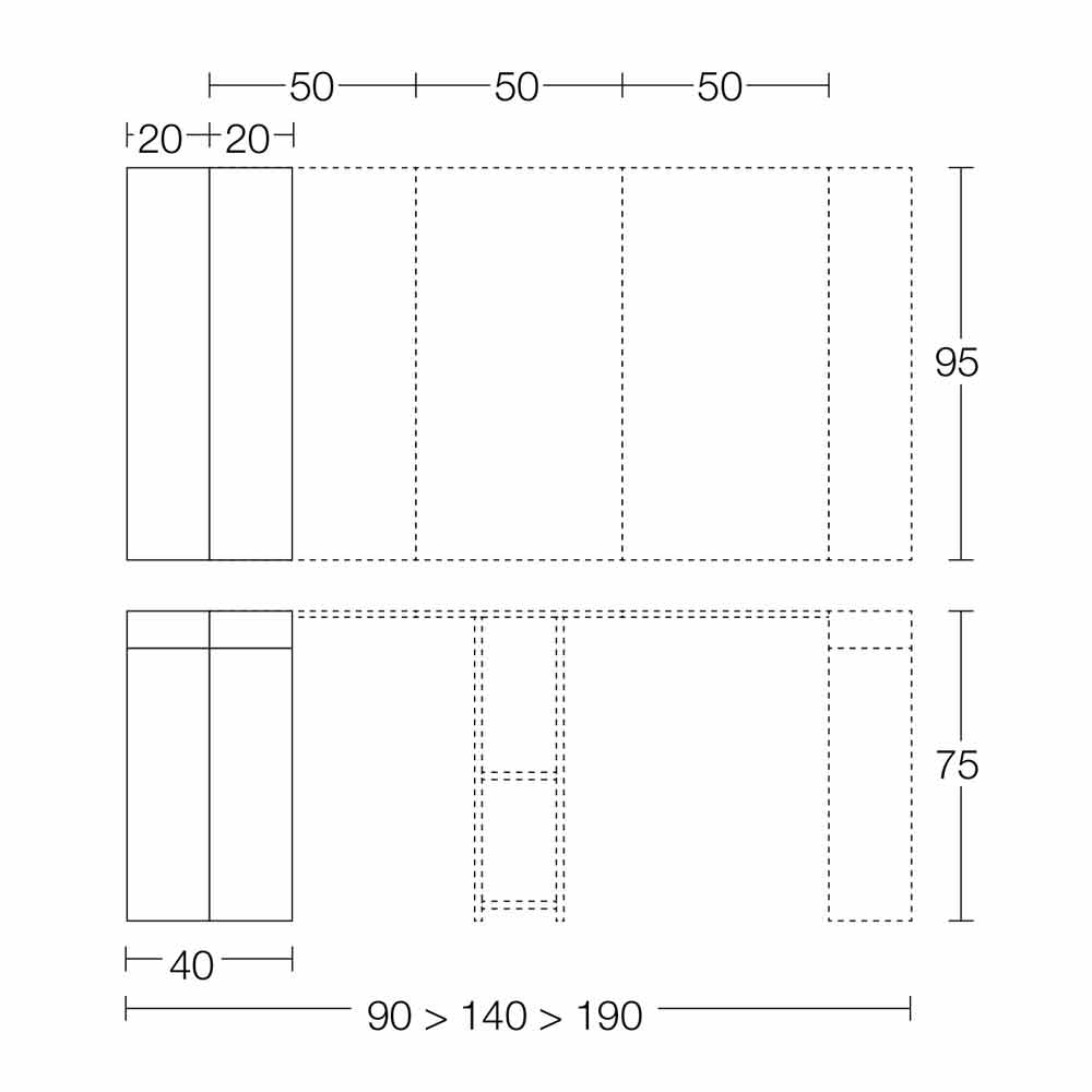 - Konzola: D 95 x H 40 x V 75 cm; Stůl Š 90/140/190/240/290 x H 95 x V 75 cm