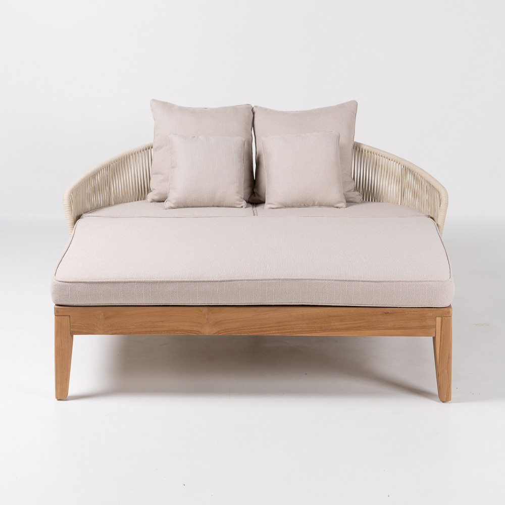 Tato denní postel není jen kus nábytku: je to pozvánka k užívání si venkovního prostoru stylově, pohodlně a s vynikající kvalitou. Je ideální pro relaxaci, čtení nebo konverzaci pod širým nebem a stane se nesporným ústředním bodem vašeho venkovního obytného prostoru.