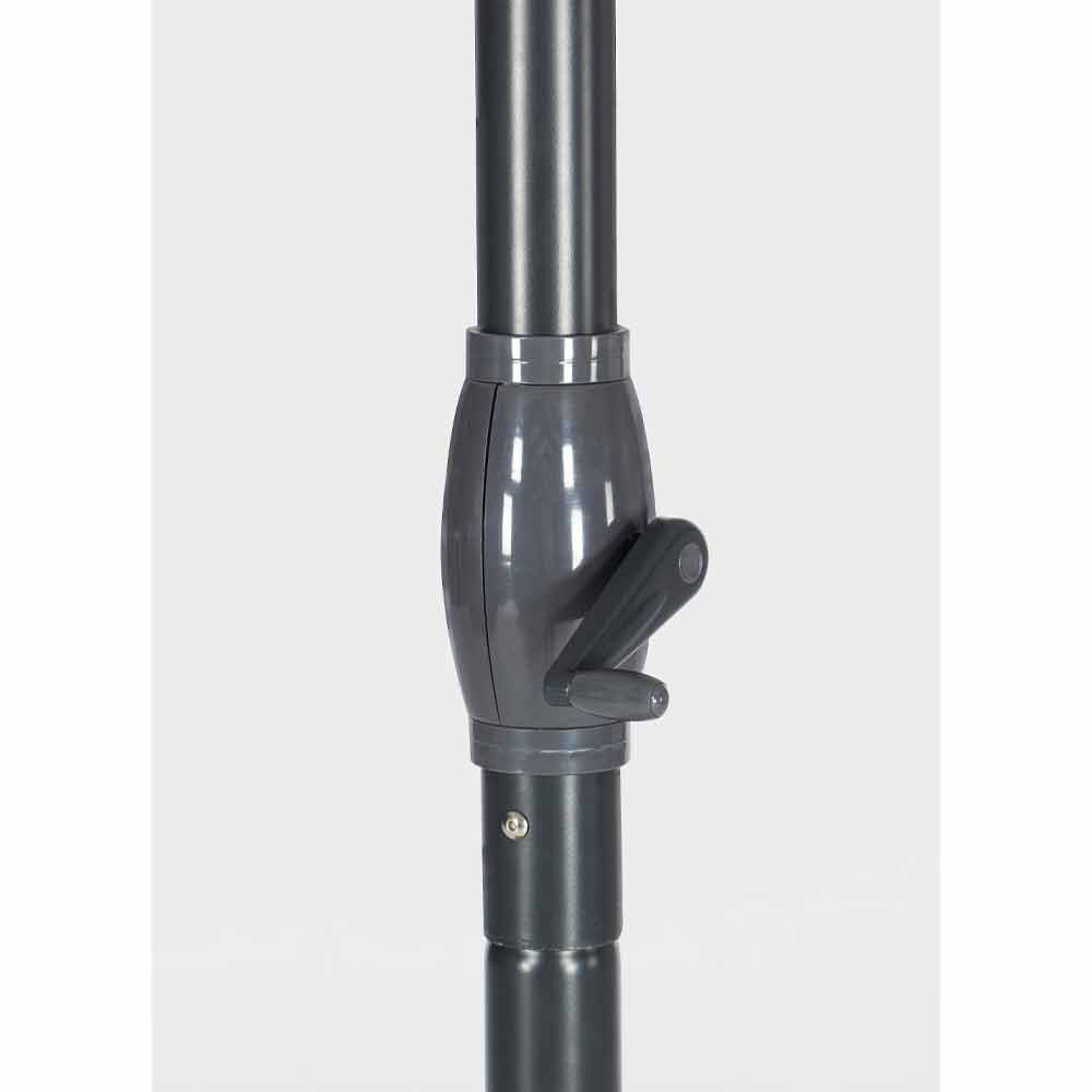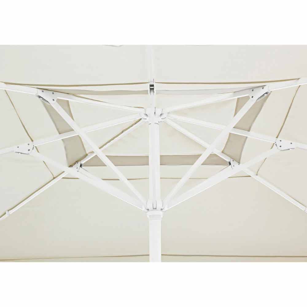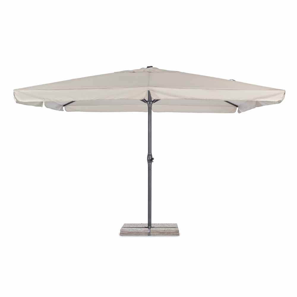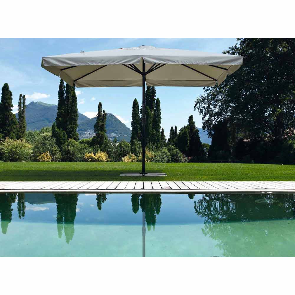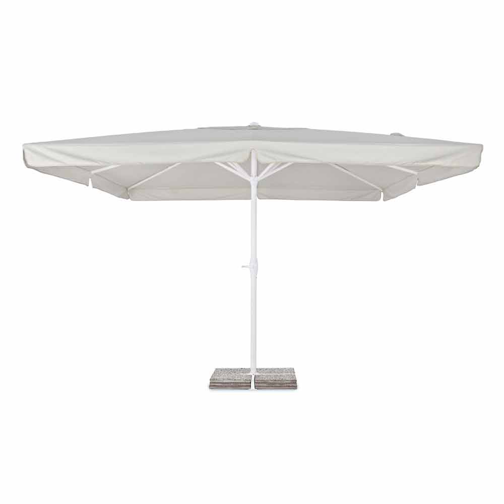 Venkovní deštník 4x4 z polyesteru s hliníkovou tyčí a ocelovou základnou.
