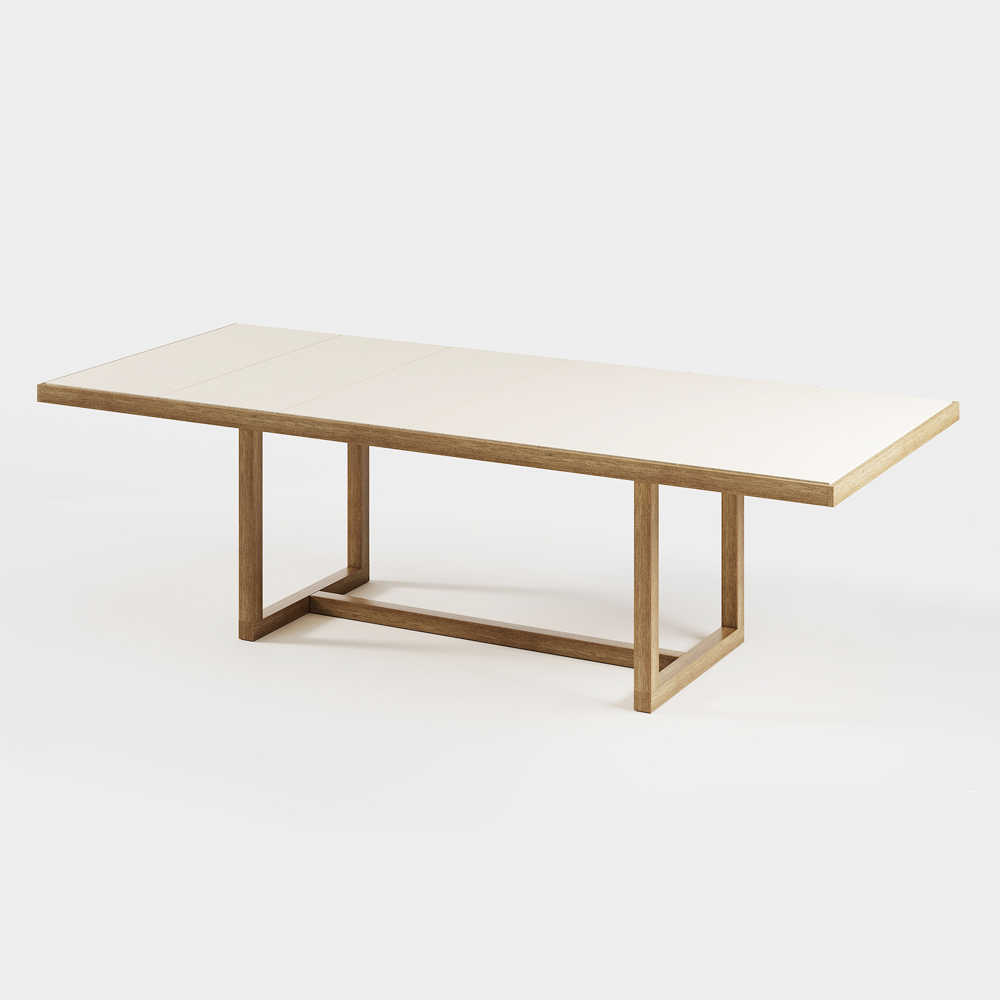 Zahradní jídelní stůl ze dřeva Iroko a deska z kameniny vyrobené v Itálii