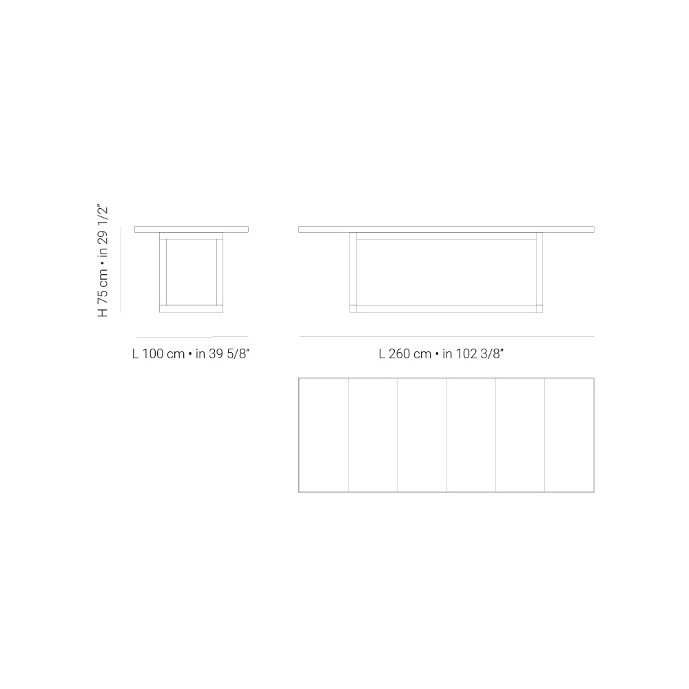 - D 260 cm x H 100 cm x V 75 cm