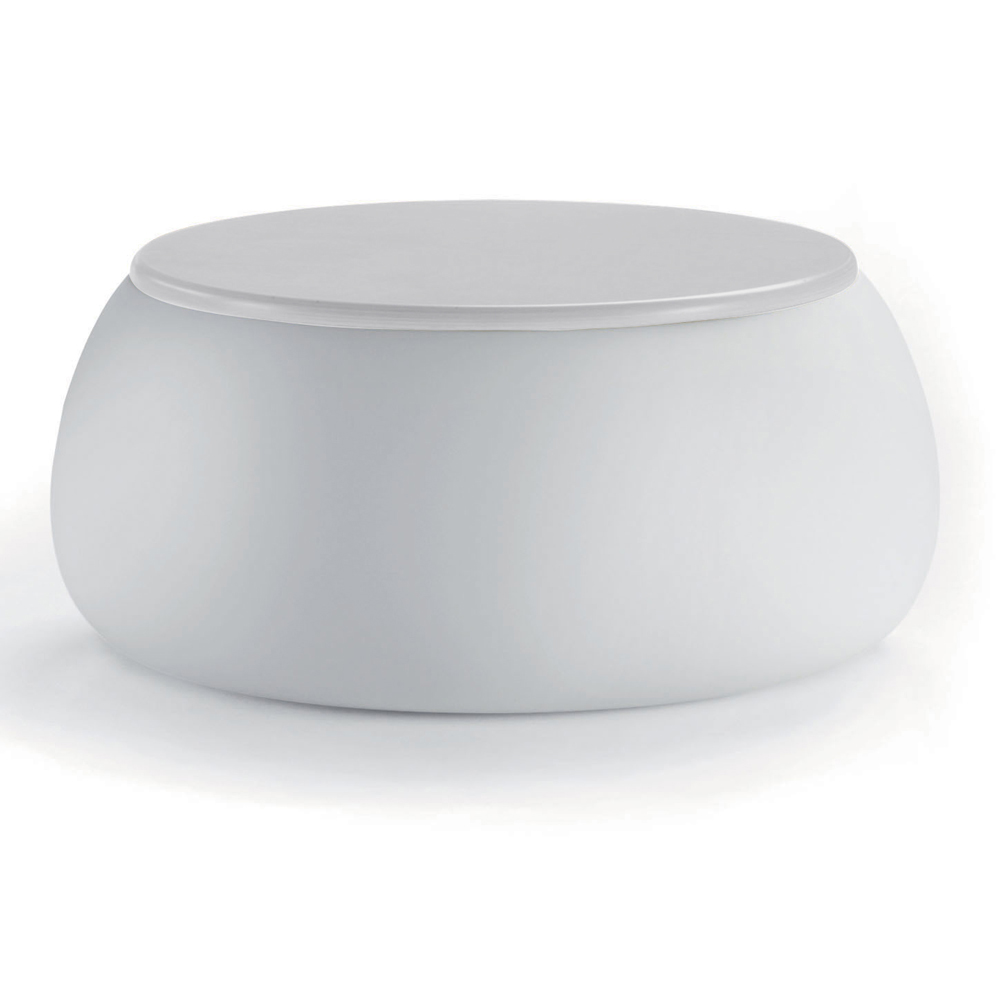 Zahradní konferenční stolek s kulatou deskou vyrobený v Itálii z polyetylenu.