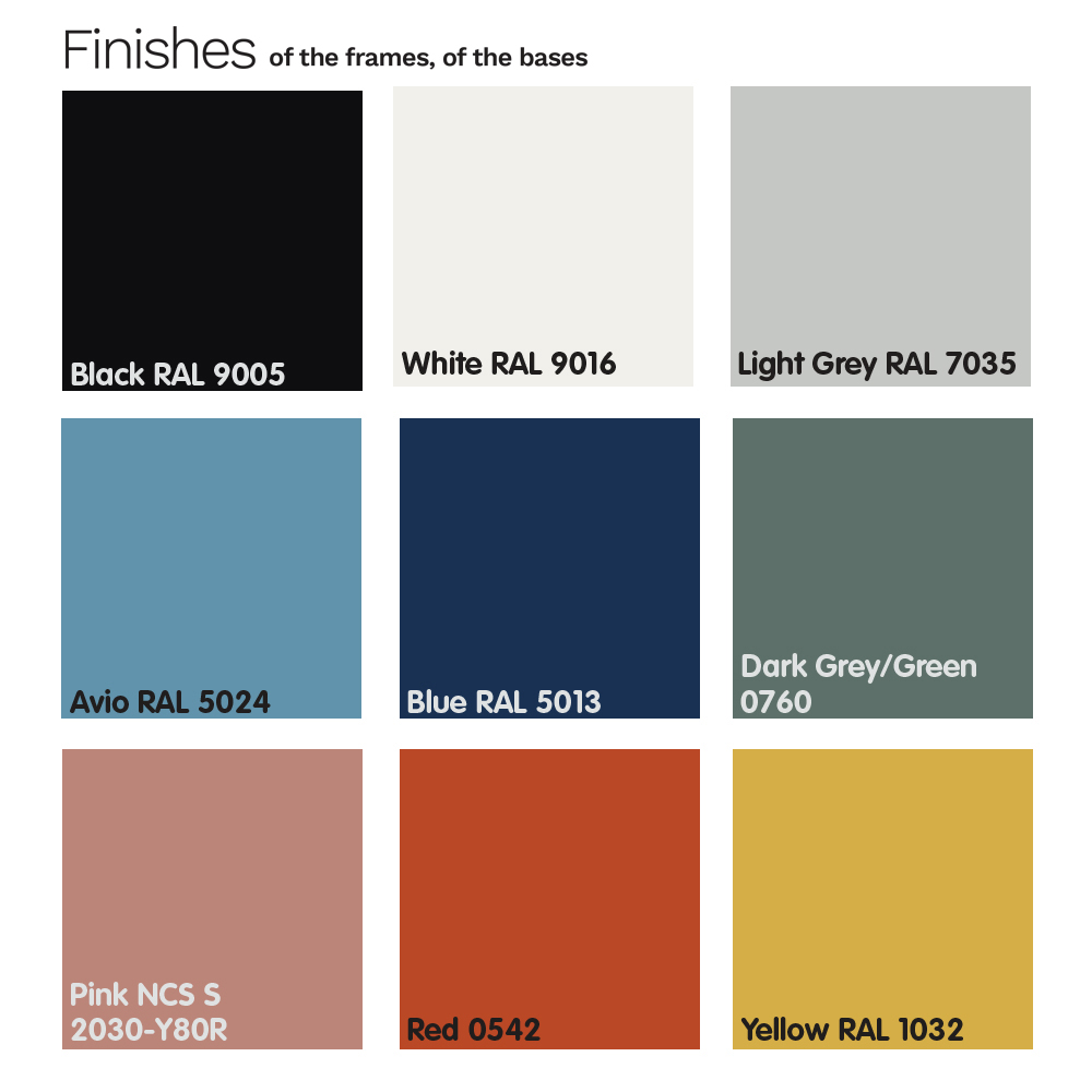 Poznámka : konstrukce a deska stolu jsou k dispozici v široké škále různých povrchových úprav.