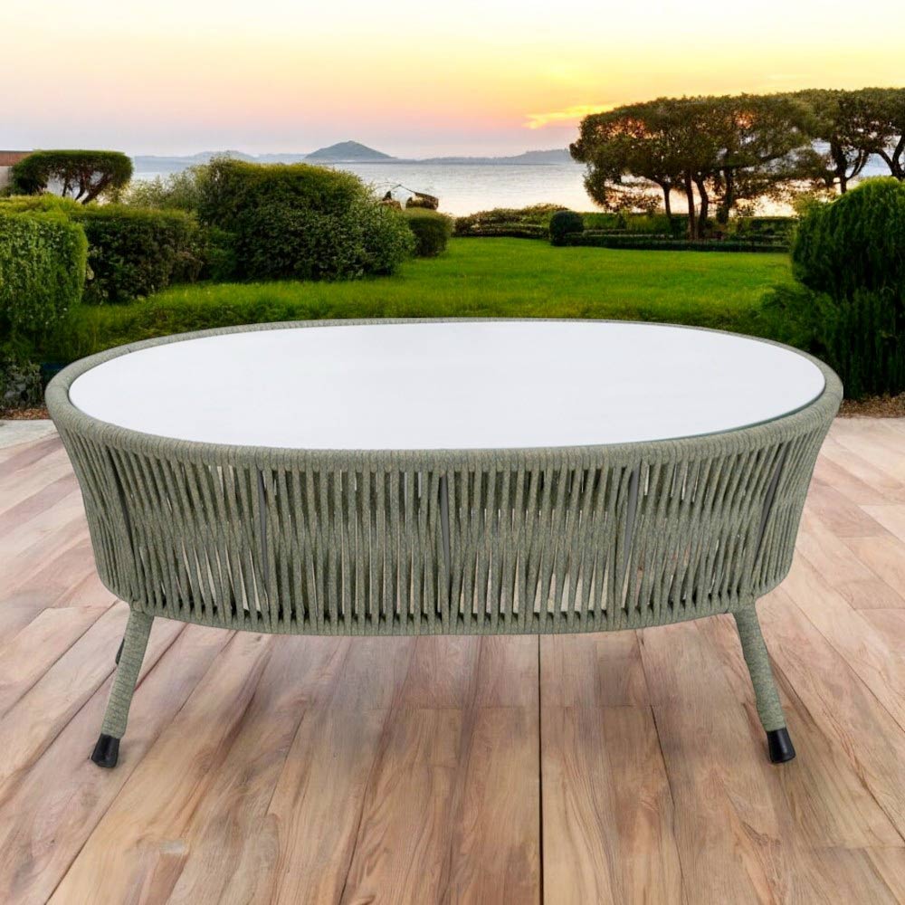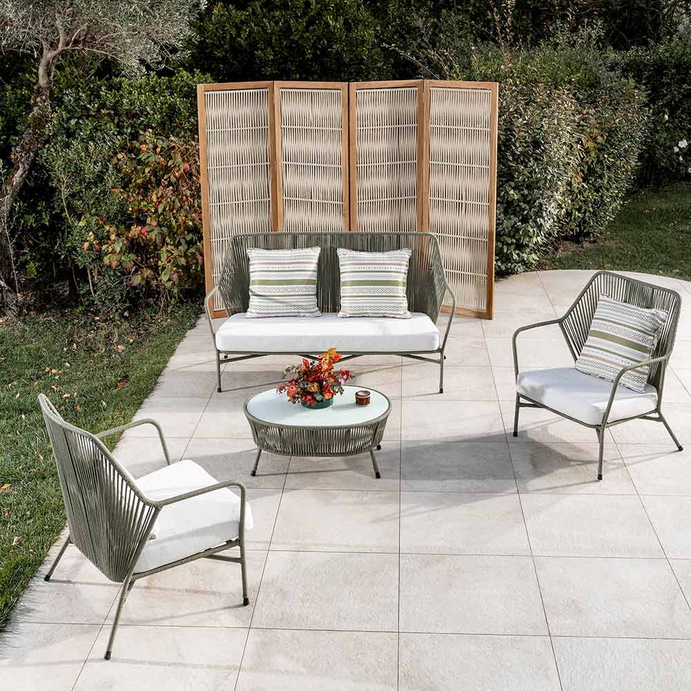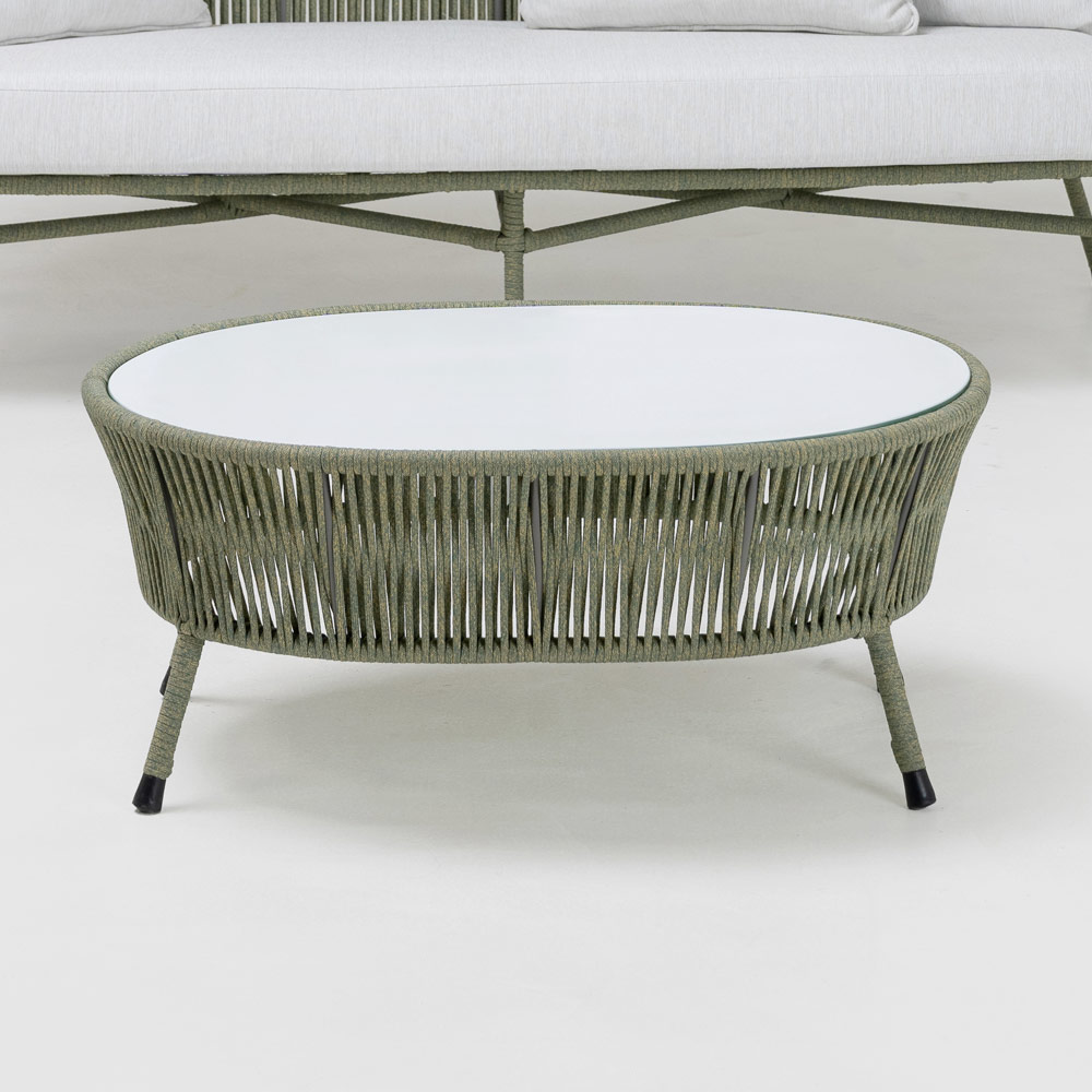 Zahradní stolek z hliníku, provazového výpletu ROPE+ a skla