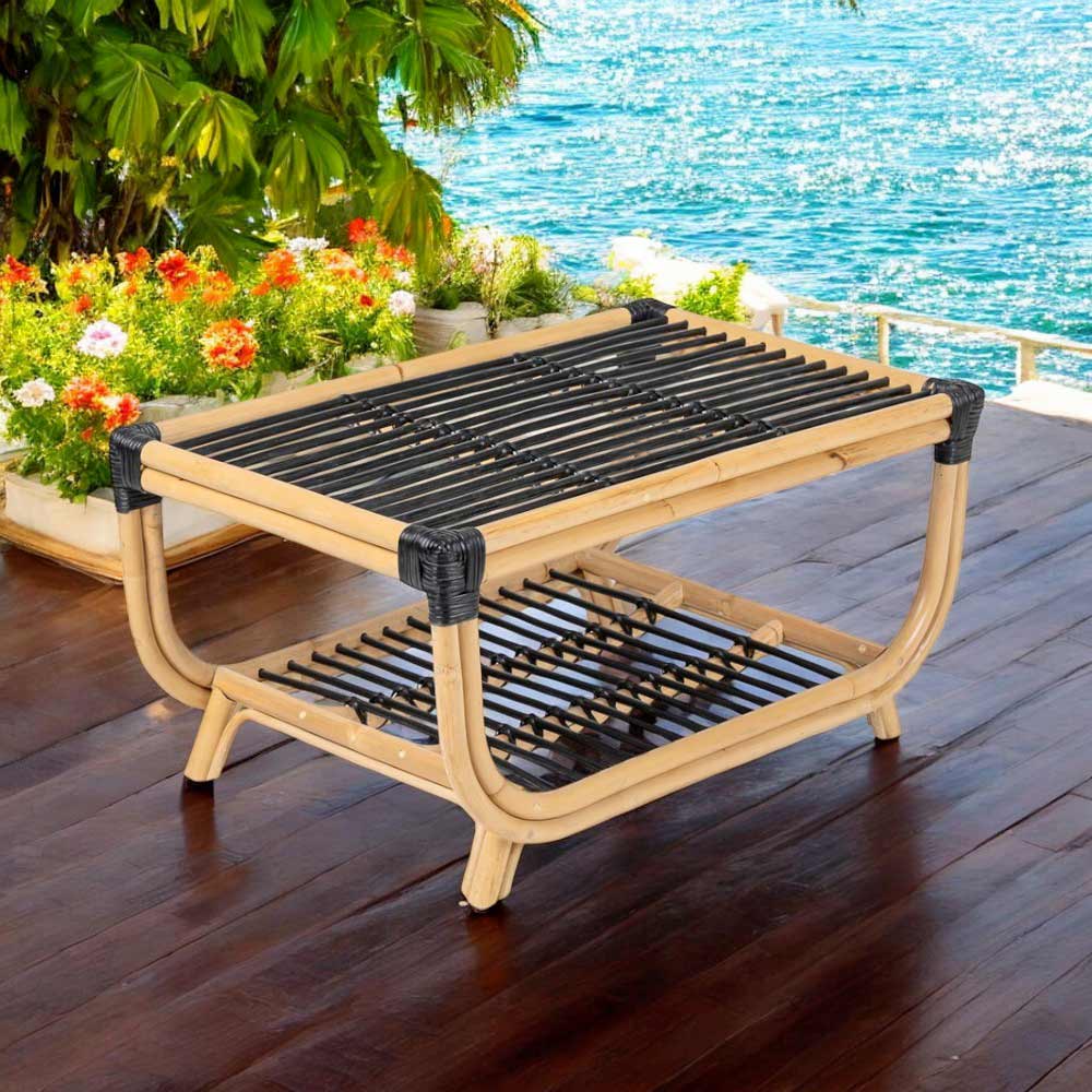 Zahradní stolek ze dřeva a přírodního ratanu.