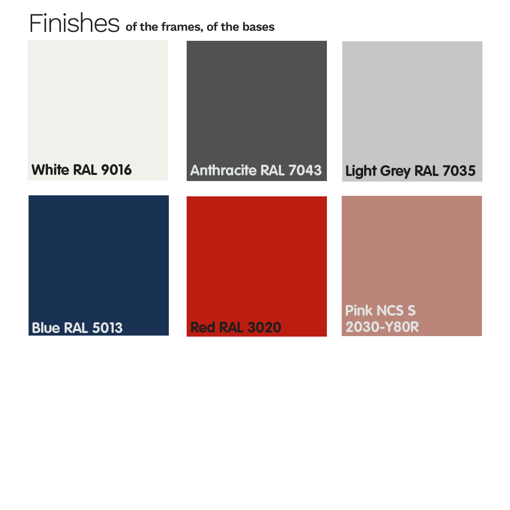 vyrobeno v Itálii . Kus nábytku s jednoduchým stylem přerušovaným základními tvary a liniemi, díky kterým je ideální pro vnesení praktičnosti, stylu a barev do jakéhokoli venkovního prostoru, domácího i soukromého, jako jsou zahrady, nádvoří nebo bazény. Jeho silnou stránkou je originalita základny složené z ekvidistantních paprsků, které vycházejí z kruhové základny a jdou přímo nahoru, na jedné straně se ohýbají ven, aby vytvořily zvláštní