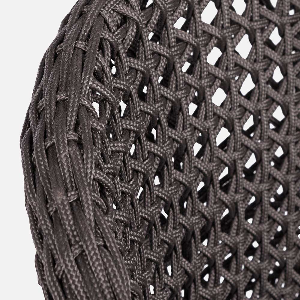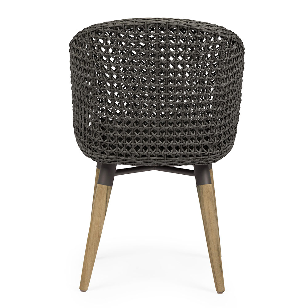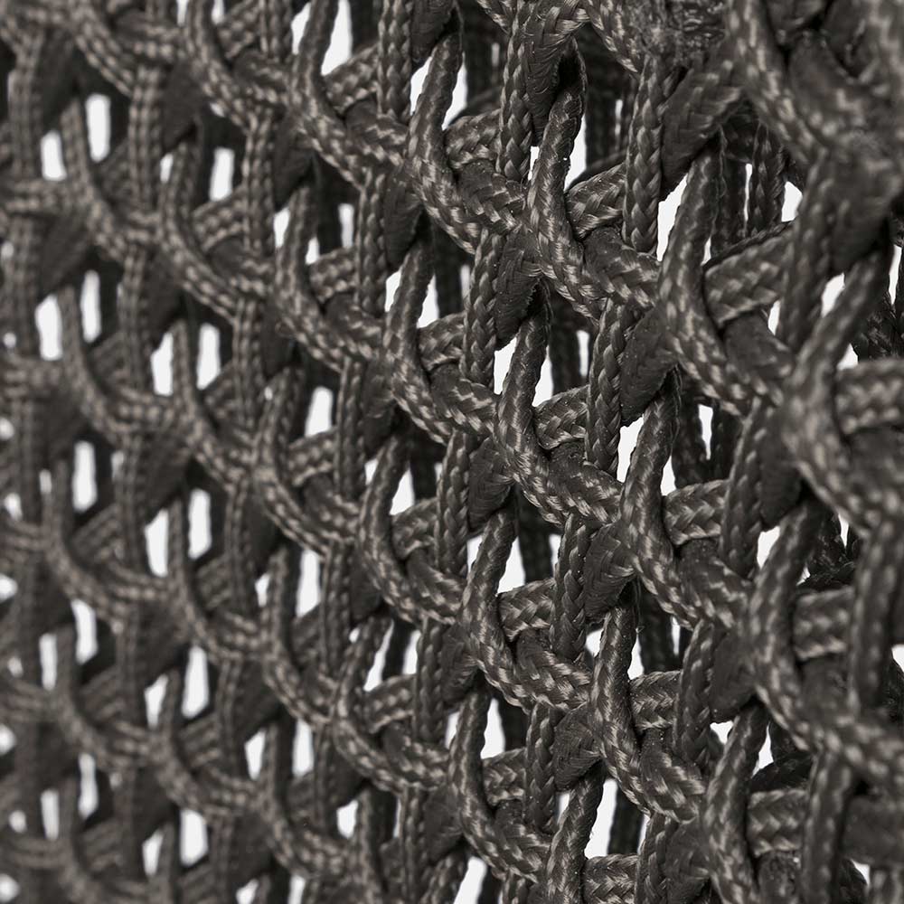 Práškově lakovaná (polyesterová) hliníková konstrukce (odlitek). Teakové nohy - SVLK (certifikované dřevo z udržitelných lesů) s rustikálním povrchem. Tkané pro venkovní použití na laně (polypropylen), vodoodpudivé a odolné proti UV záření.