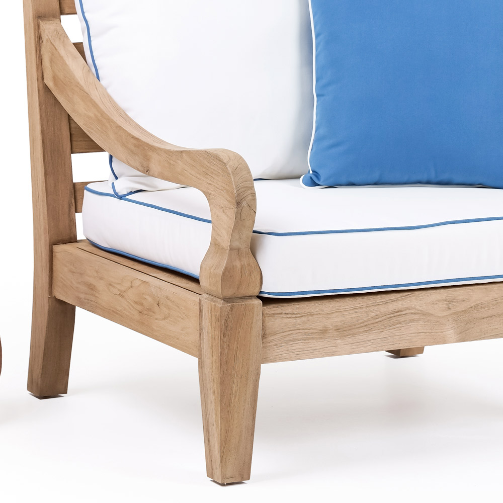 Zahradní křeslo z přírodního kartáčovaného teakového dřeva s čalouněnými polštáři