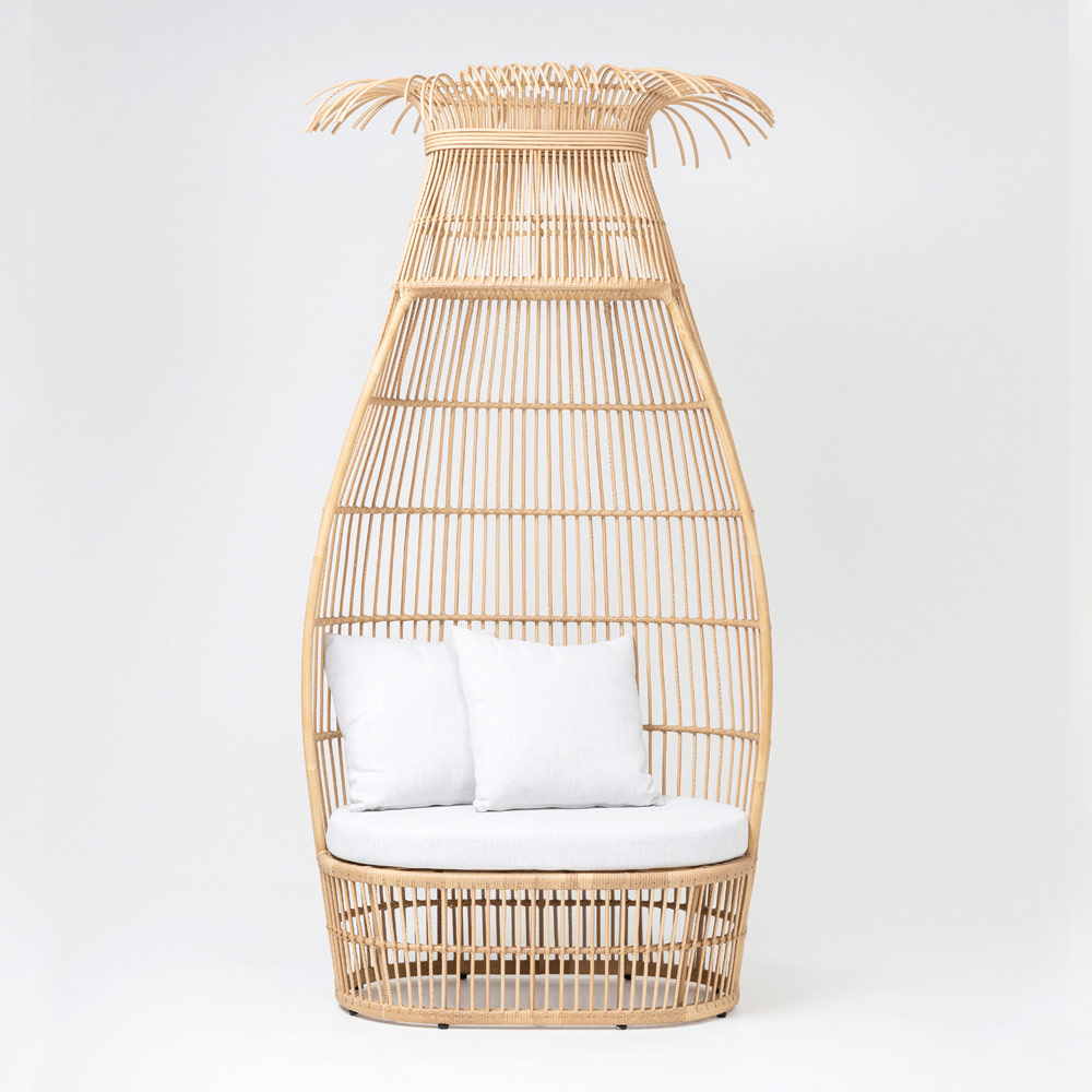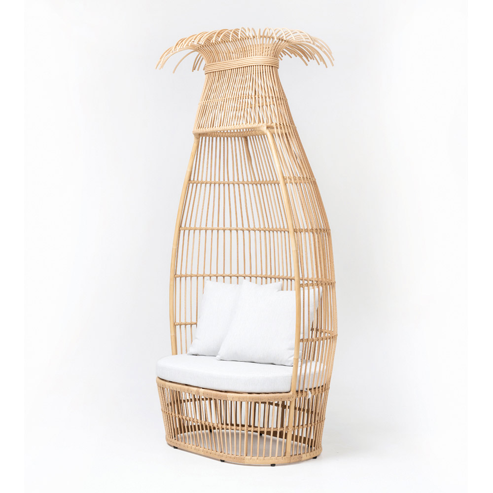 Toto zahradní křeslo je skutečným hnízdem elegance a pohodlí . Jeho vysoký oválný rám, odborně vyrobený z polyratanu, evokuje představy exotických plážových útočišť a harmonicky zapadá do venkovního prostředí. Otevřená, vzdušná konstrukce zajišťuje proudění vzduchu a světla, zatímco zakřivený tvar poskytuje pocit ochrany a privátnosti .