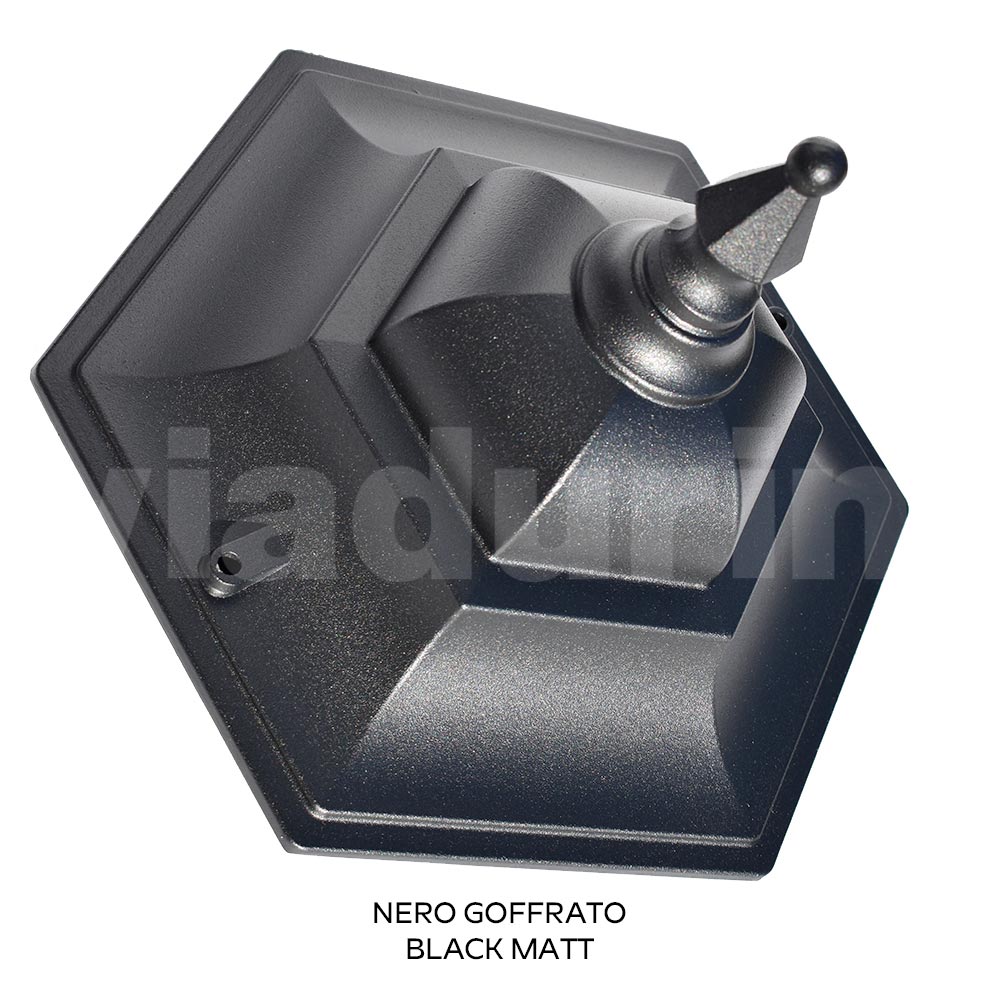 Zahradní lampa vyrobená z tlakově lité hliníkové konstrukce a průhledného skleněného difuzoru, zcela vyrobena v Itálii.