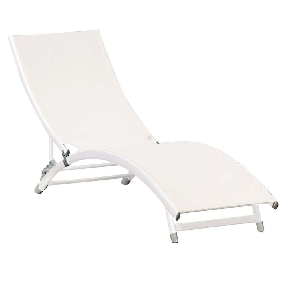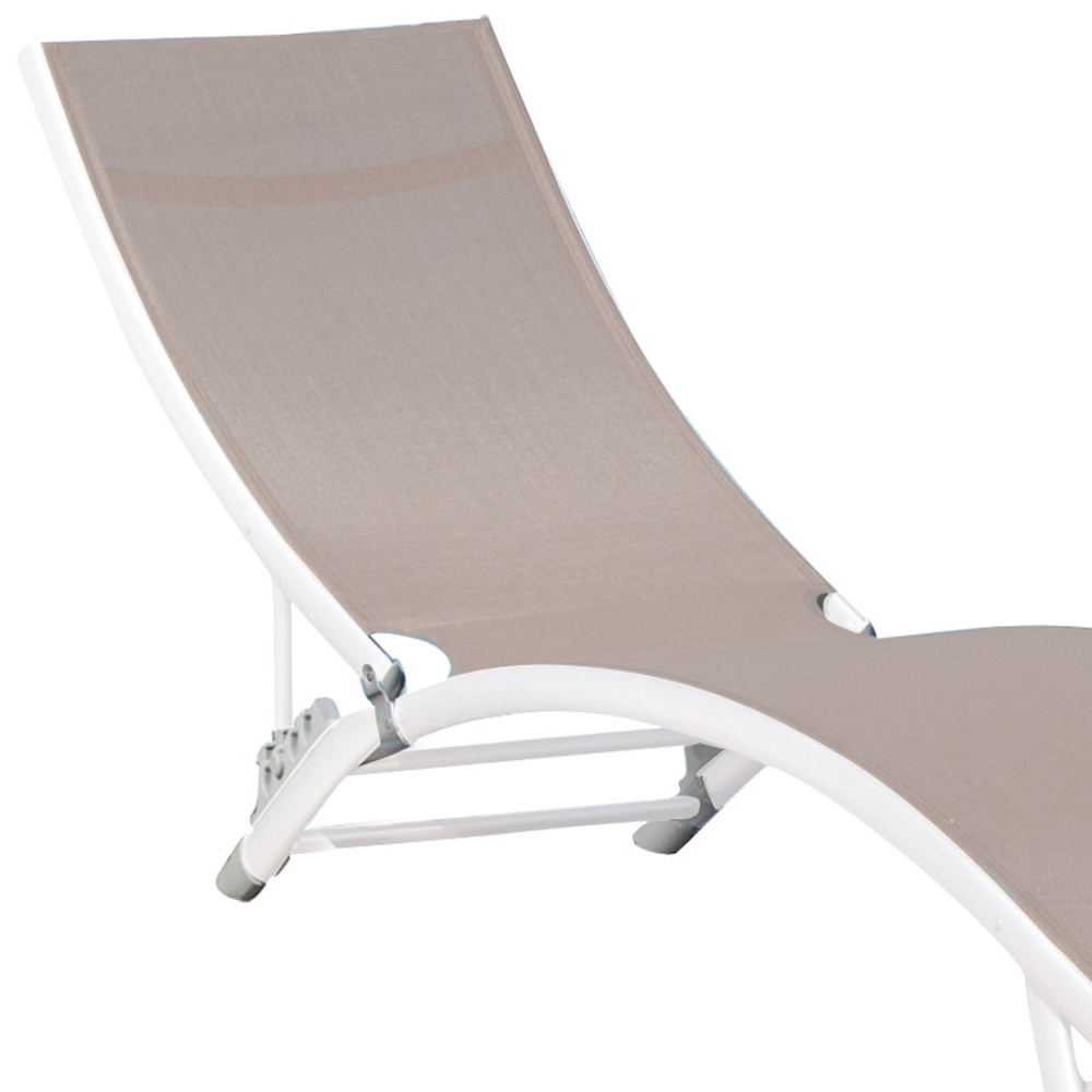 Venkovní lenoška s hliníkovou konstrukcí a textilním sedákem.