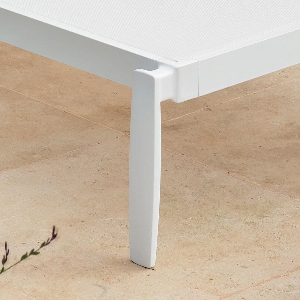 Kolekce je charakterizována detailem hliníkové nohy jako ústředního bodu, kde můžete zažít venku z hlediska maximální relaxace a pohody, sedět na pohovce, kolem stolu nebo ležet na lehátku.