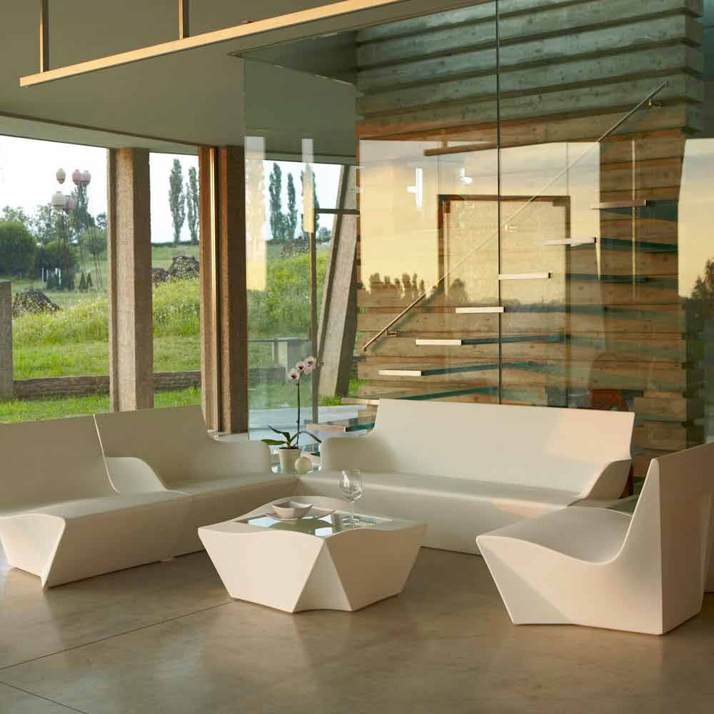 Kami Yon je dvoumístná pohovka s područkami s abstraktním, ale zásadním designem, který připomíná tradiční origami japonského umění, a představuje tak linie, které odkazují na záhyby, ale dávají tvar kusu nábytku s měkkými, originálními a elegantními liniemi. Ideální pro moderní a moderní nábytek v interiéru i exteriéru.
