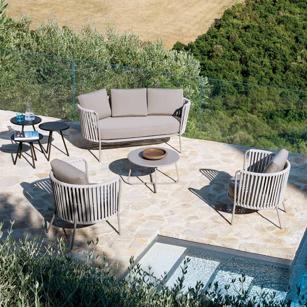 Tato pohovka je ideální pro stylové vybavení jakéhokoli venkovního prostoru. Je ideální pro doplnění obývacích pokojů, vytvoření odpočinkových koutků nebo obohacení relaxační zóny o elegantní detail. Jednoduchost, všestrannost a krása se setkávají v jedinečném a velmi moderním kousku!