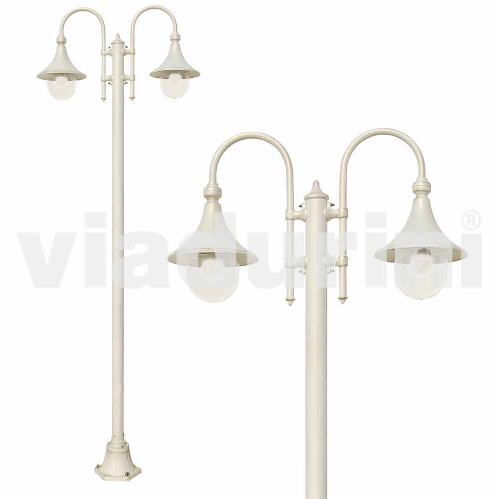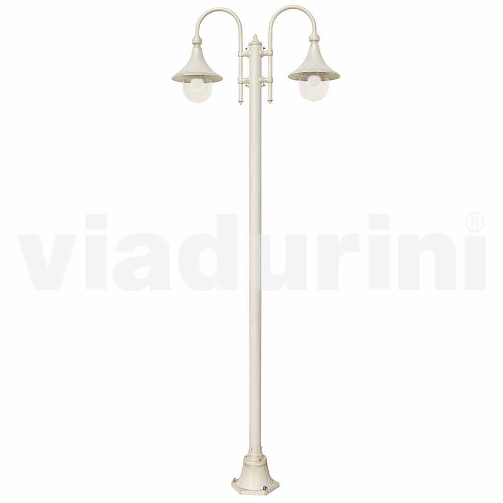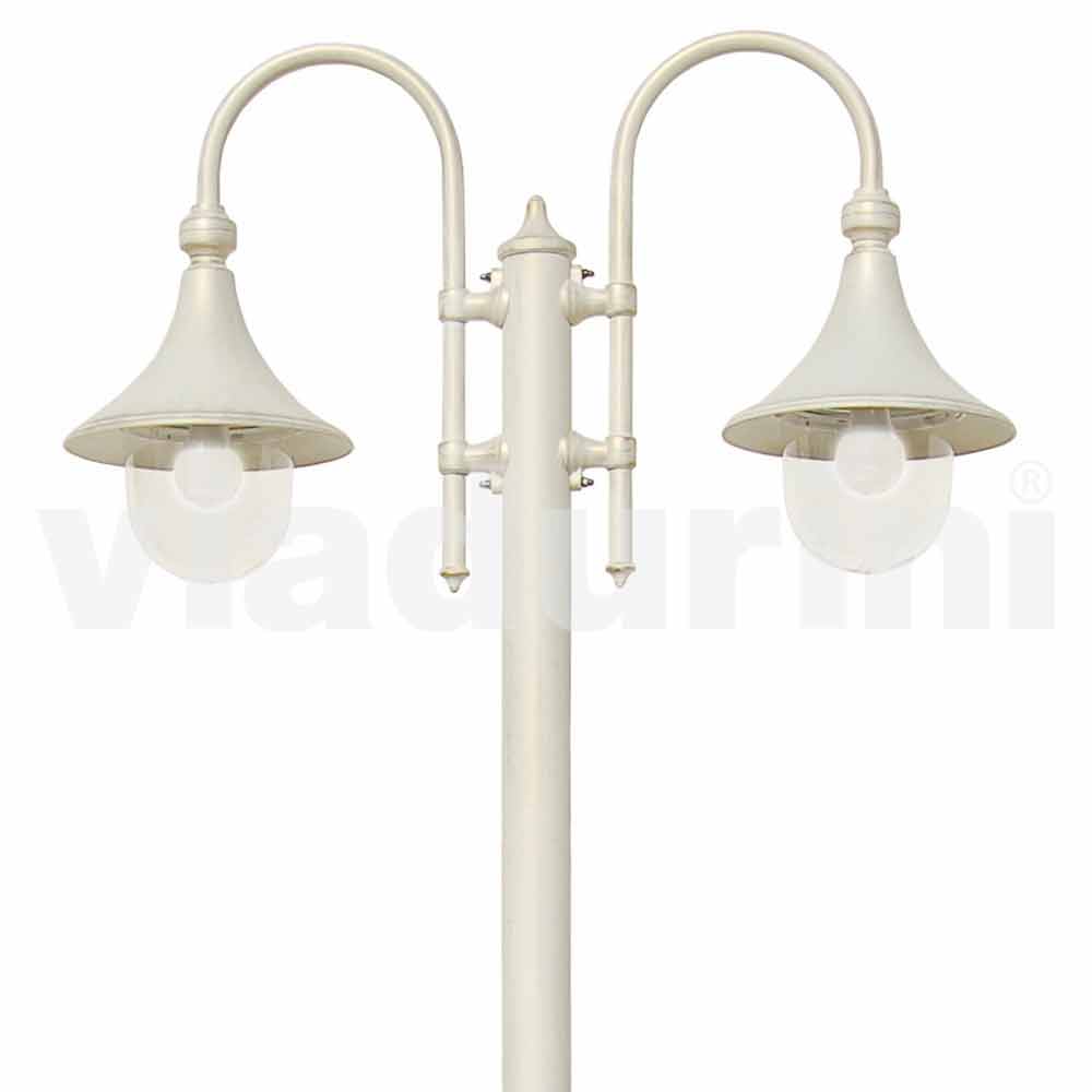 Dvousvětelná zahradní lampa z bílého hliníku vyrobená v Itálii, Anusca
