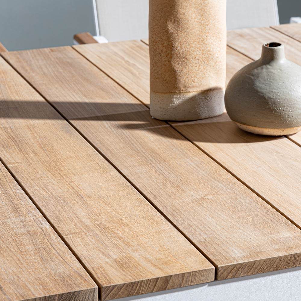Tento zahradní stůl představuje dokonalé spojení moderní střídmosti a přirozeného tepla . Jeho lineární a minimalistická struktura z lakovaného hliníku se harmonicky snoubí s teplou dřevěnou deskou a vytváří vizuální kontrast, který je trendy a nadčasový . Ideální pro letní večeře, brunche pod sluncem nebo jako stylový prvek pro váš venkovní prostor, tento stůl je nápadným příkladem současného designu . Jeho velkorysá plocha nabízí dostatek prostoru pro hosty přátel a rodiny, zatímco odolnost materiálů zajišťuje dlouhou životnost a snadnou údržbu. Stůl nejen k jídlu, ale také místo setkávání, kde můžete sdílet vzácné chvíle, tento kousek je optimální volbou pro ty, kteří ocení kouzlo esenciality a funkční elegance.
