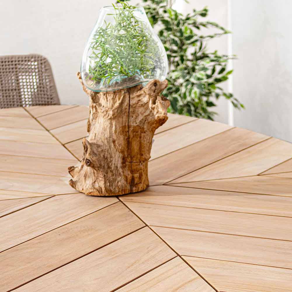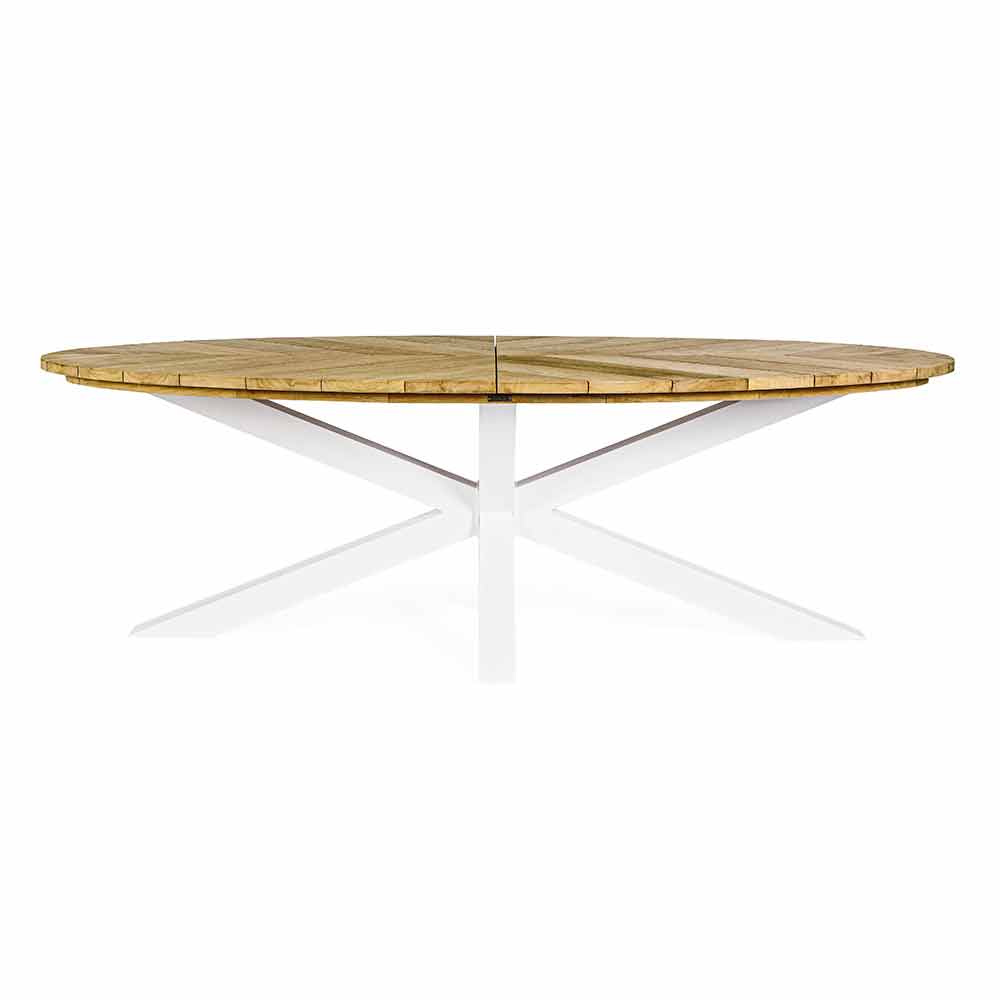 Top z teakového dřeva (třída A) - SVLK (certifikované dřevo z udržitelných lesů), nohy z práškově lakovaného hliníku (polyester). Ferramente z pozinkované oceli.