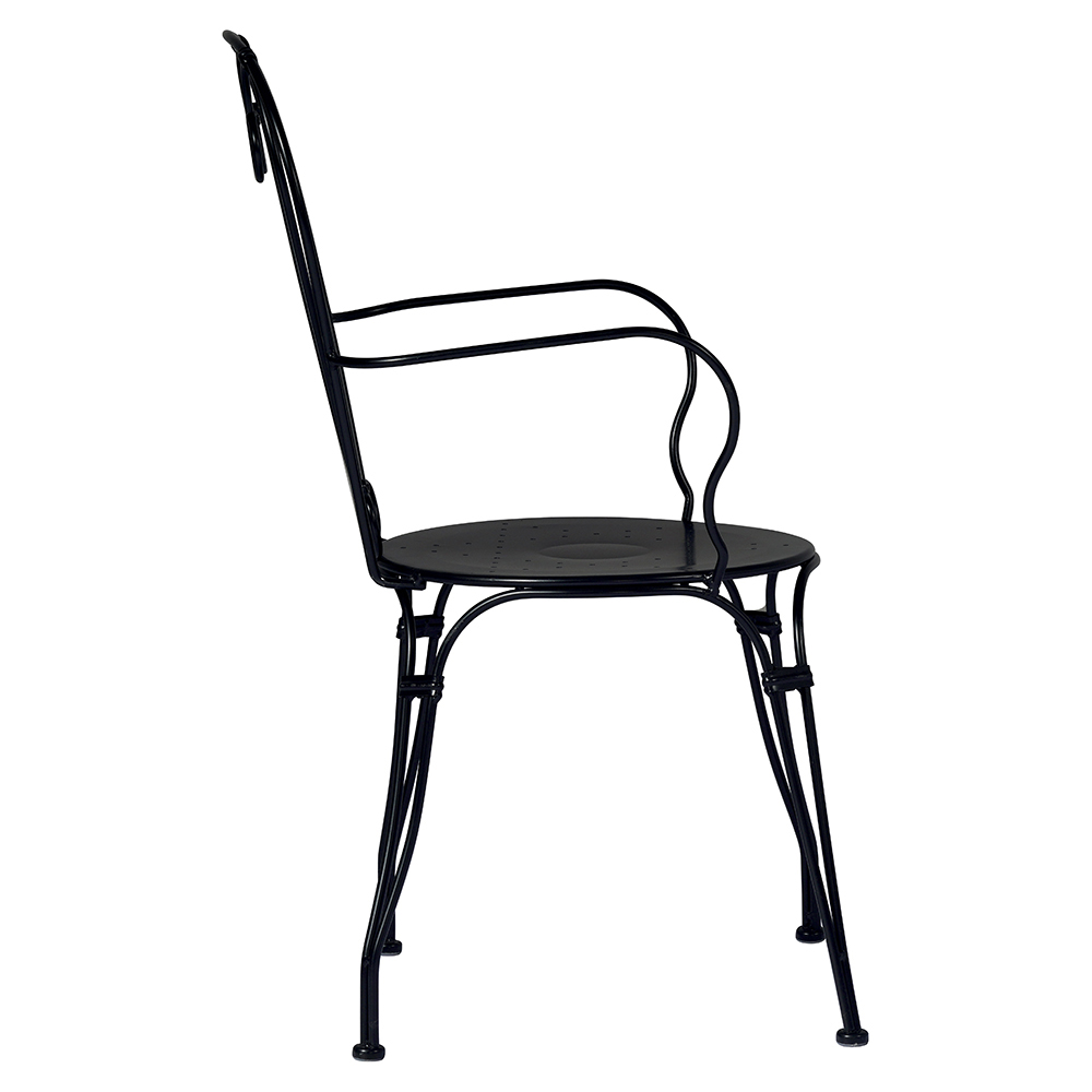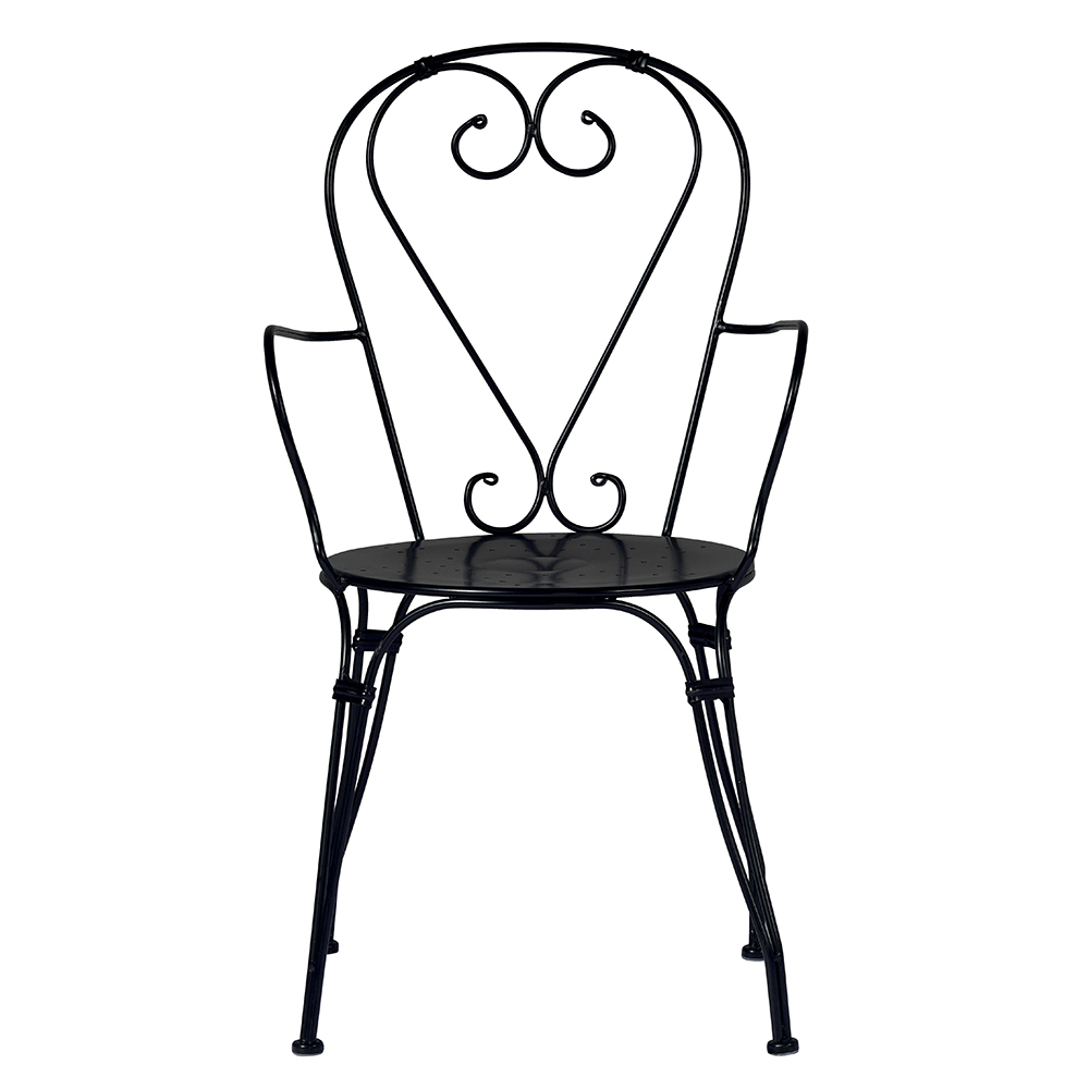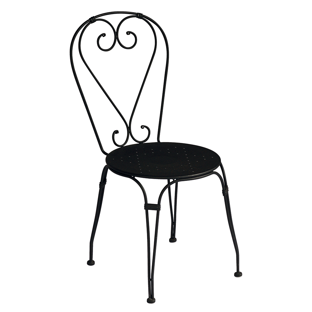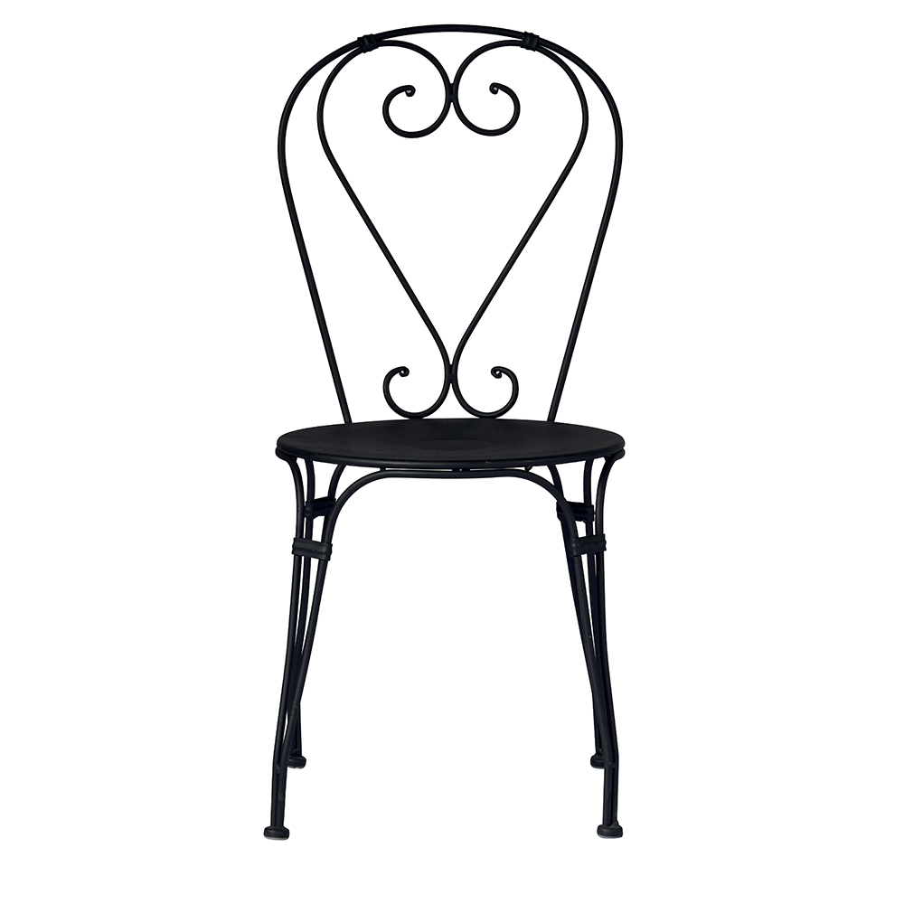 Stohovatelná venkovní židle se sedákem a konstrukcí z černě lakovaného železa s antikorozní úpravou . Zahradní židle se vyznačuje designem ve tvaru srdce sjednoduchými liniemi a střízlivými tvary, díky nimž je obzvláště univerzální díky malým rozměrům, lehkosti a ovladatelnosti konstrukce.